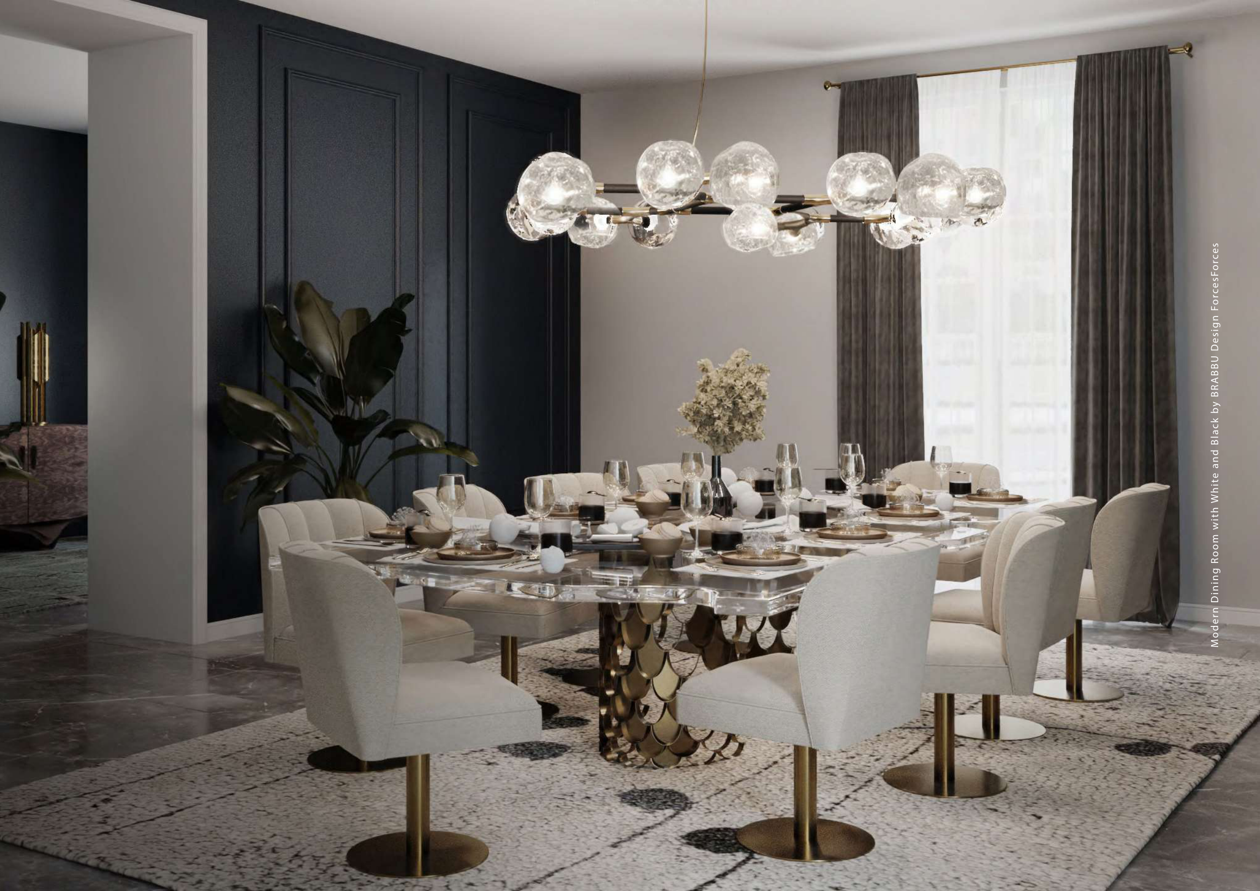 Modern Dining Room with White and Black by BRABBU Design ForcesForces