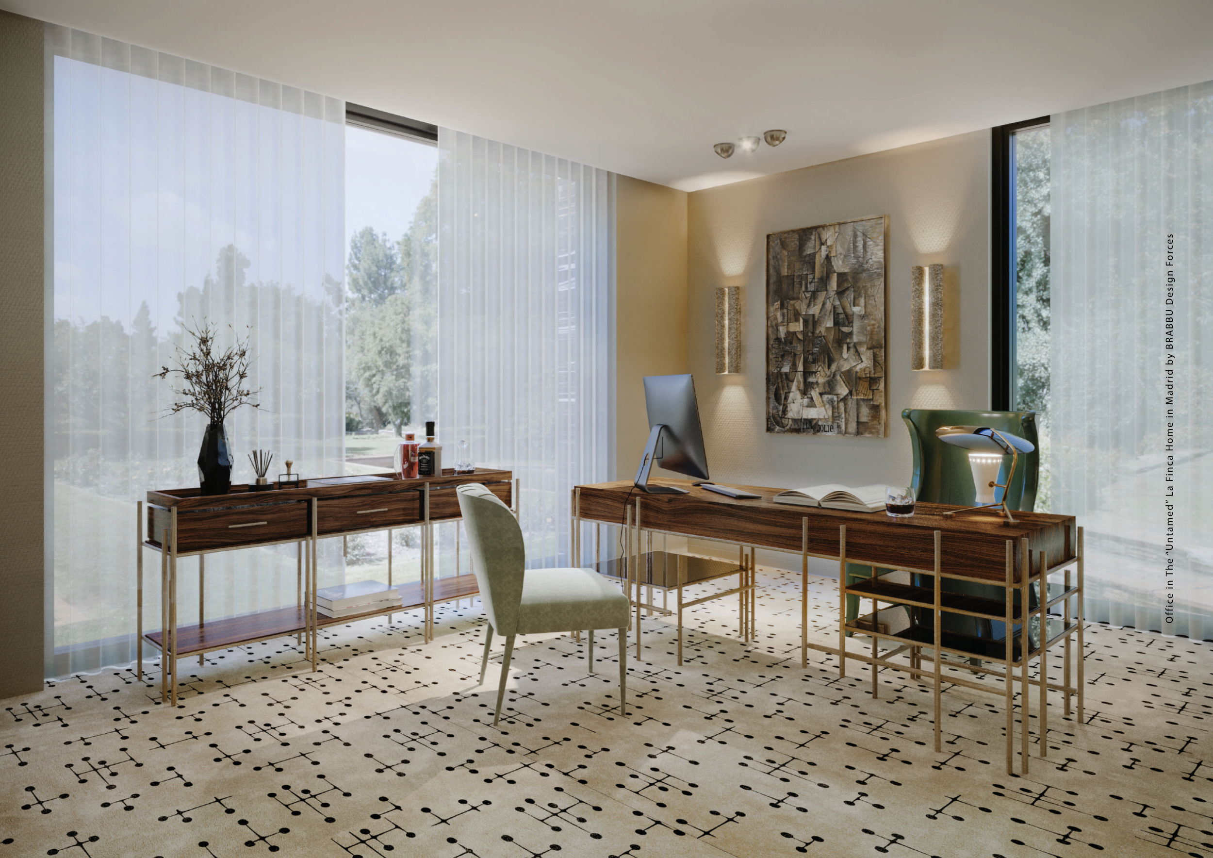 Office in The “Untamed” La Finca Home in Madrid by BRABBU Design Forces