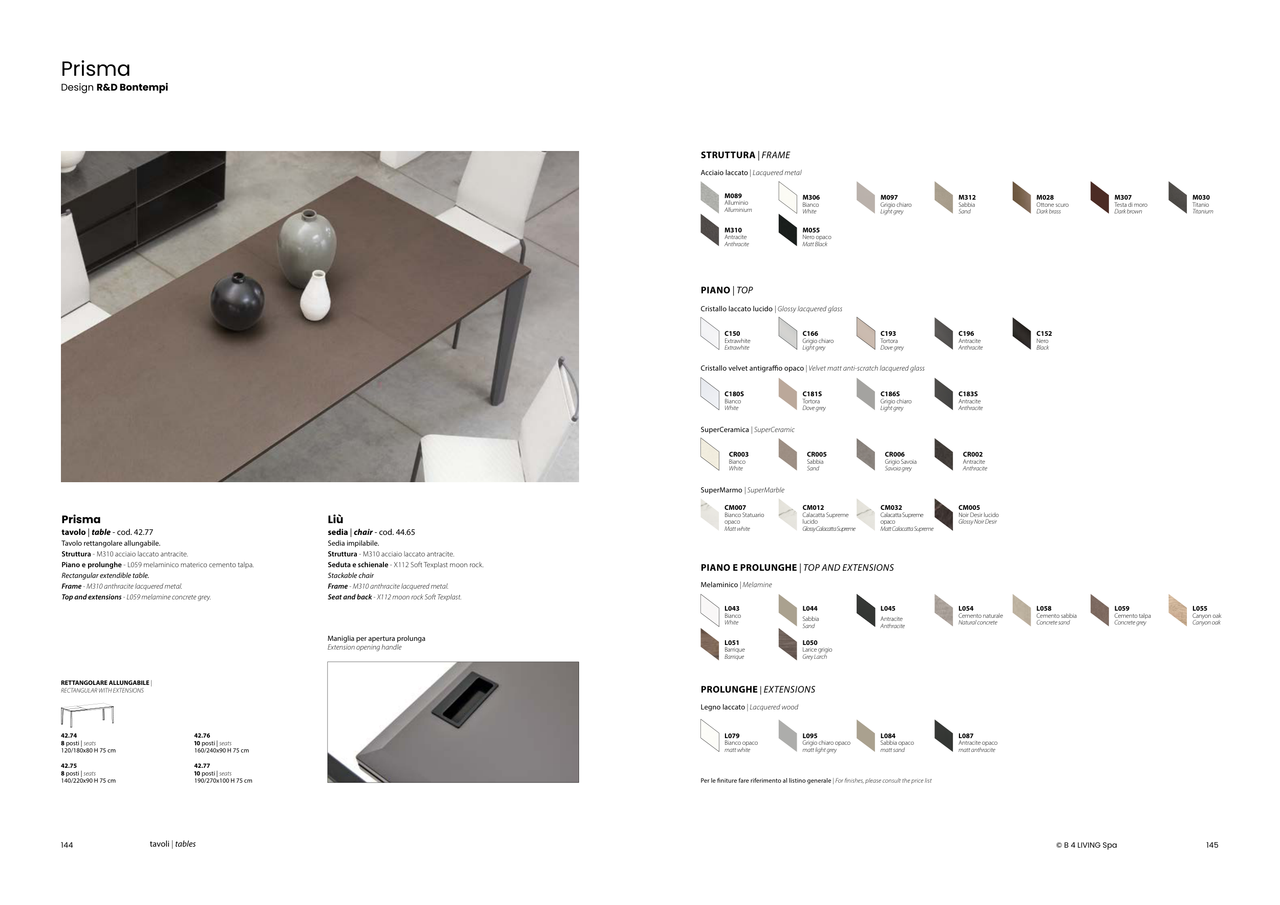Per le finiture fare riferimento al listino generale | For finishes, please consult the price list