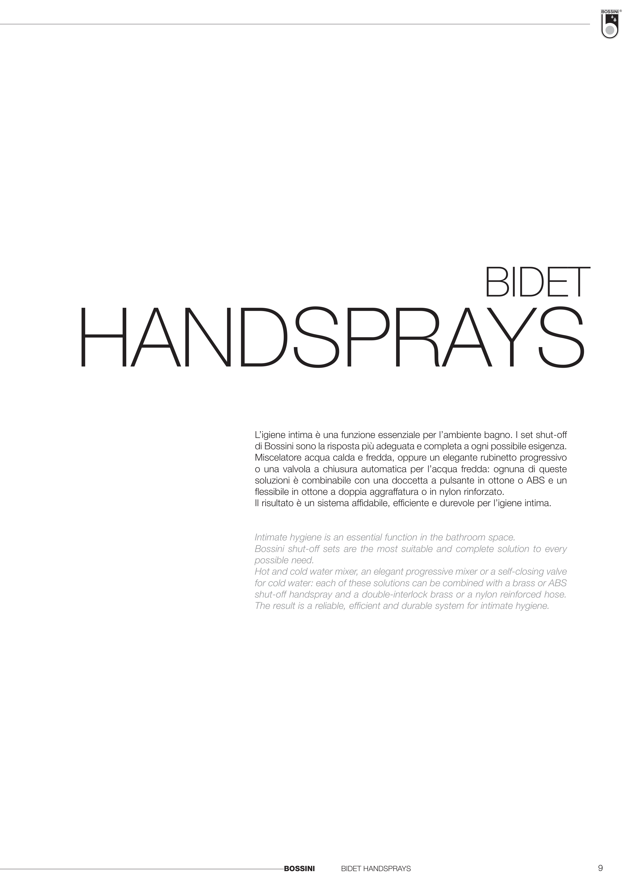 Bossini shut-off sets are the most suitable and complete solution to every