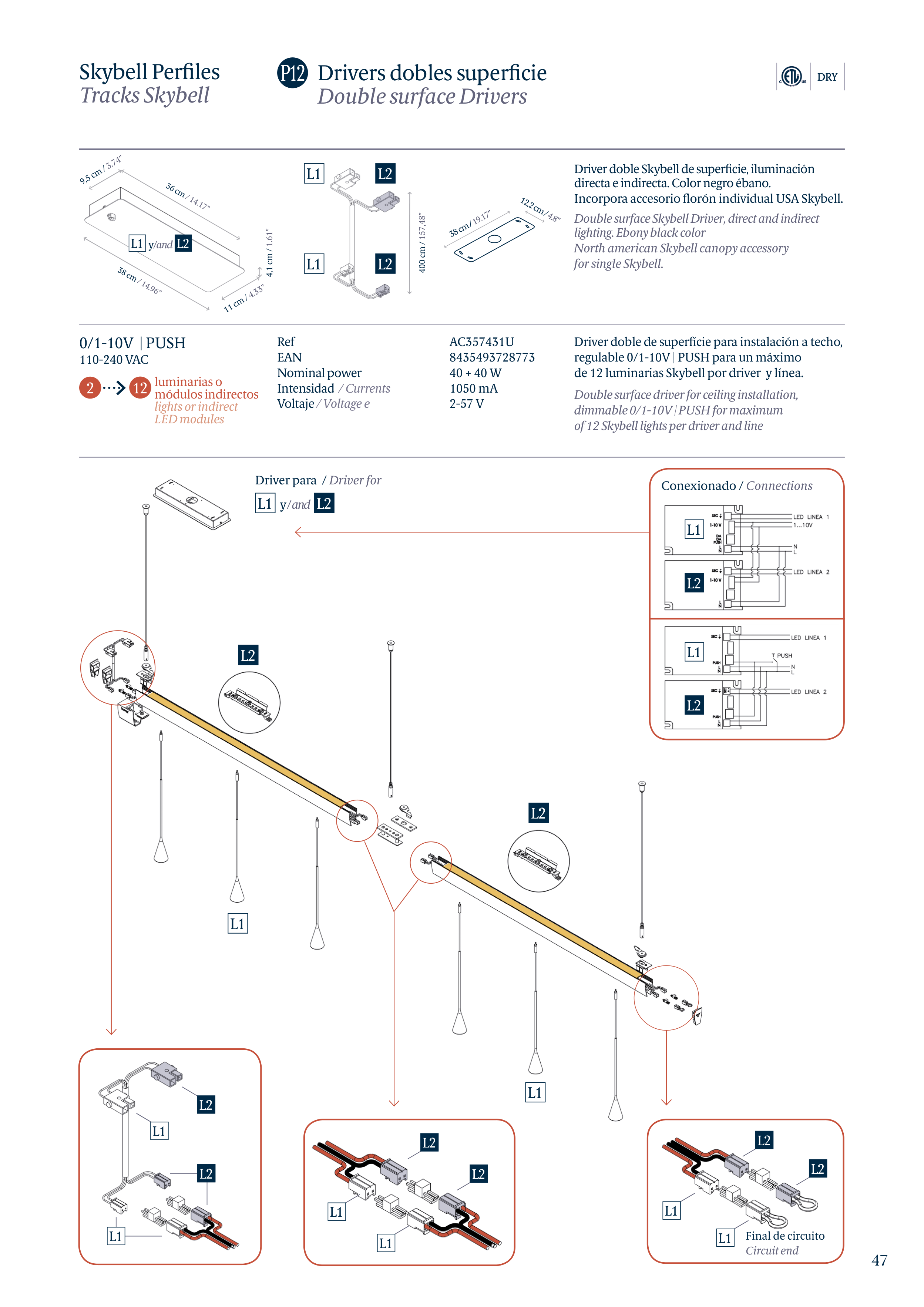 de 12 luminarias Skybell por driver y línea.