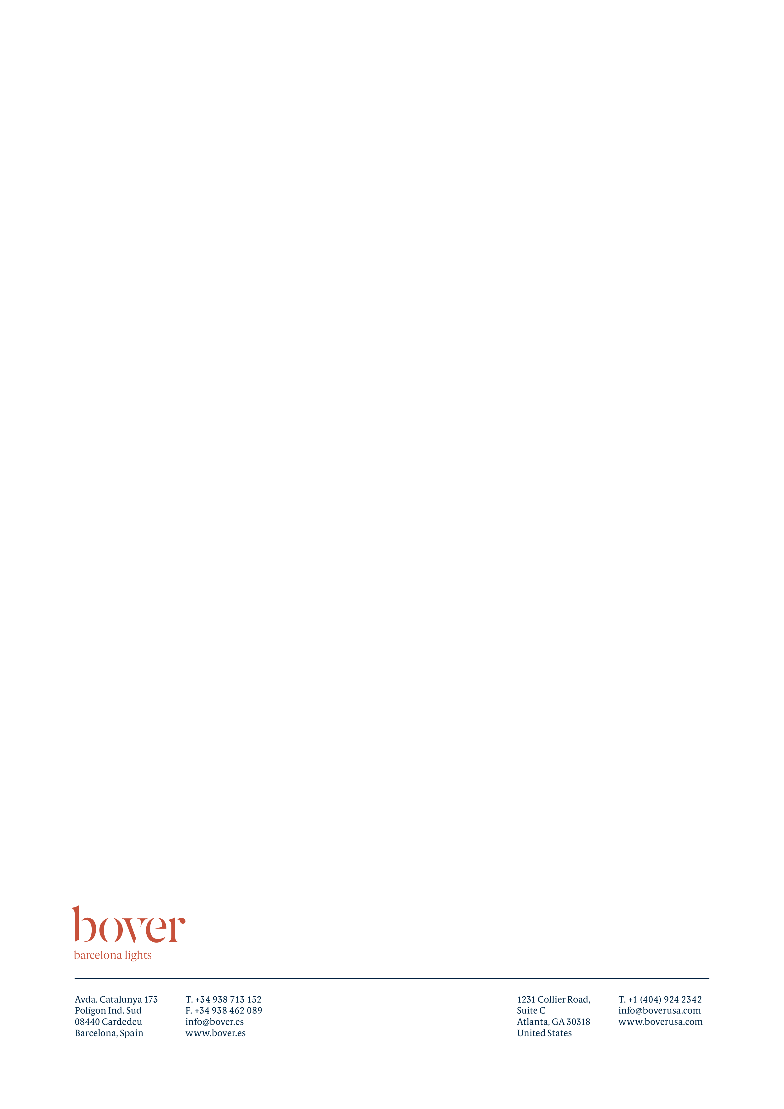 Avda. Catalunya 173 Polígon Ind. Sud 08440 Cardedeu Barcelona, Spain T. +34 938 713 152 F. +34 938 462 089 info@bover.es www.bover.es 1231 Collier Road, Suite C Atlanta, GA 30318 United States T. +1 (404) 924 2342 info@boverusa.com www.boverusa.com