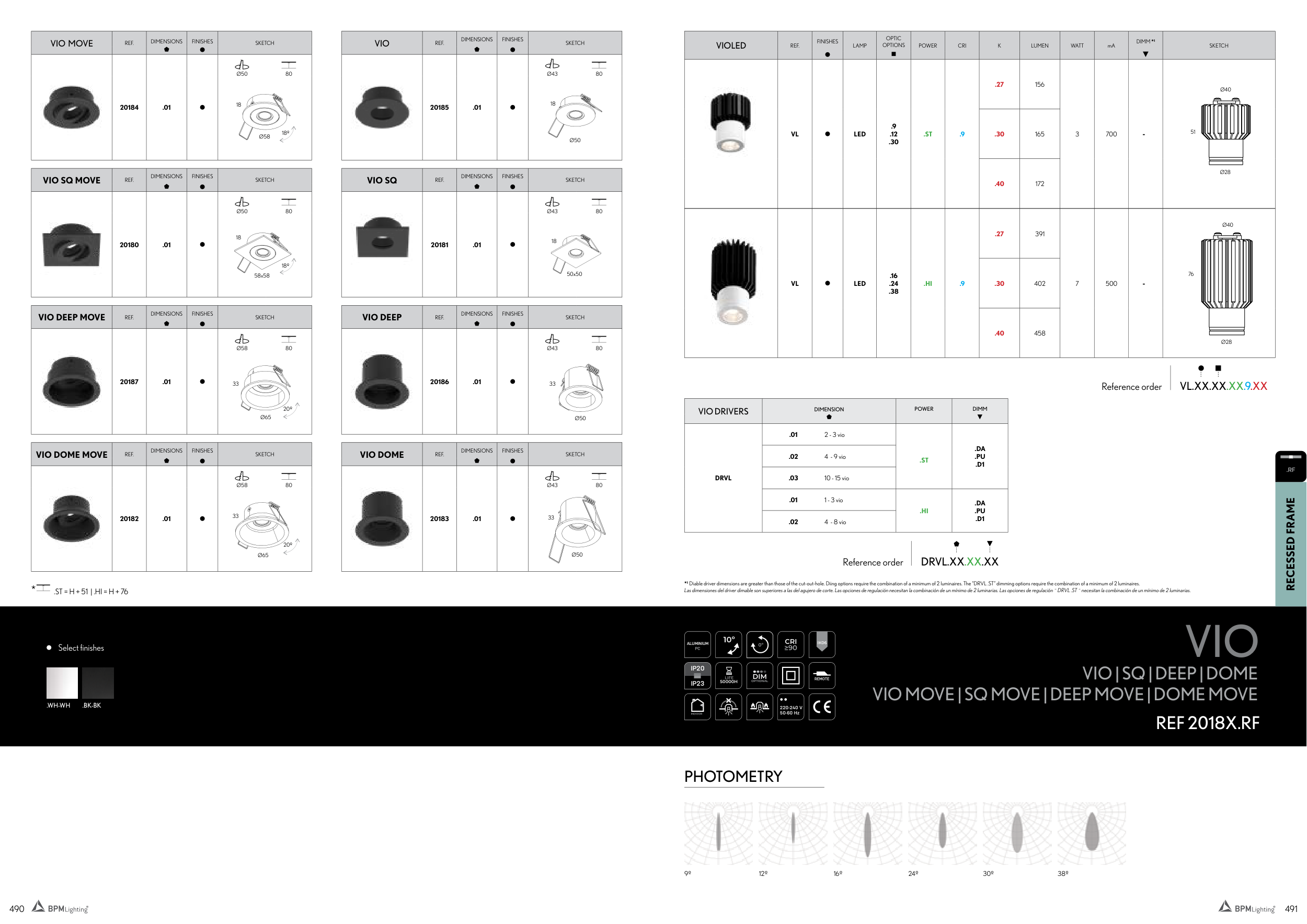 Las dimensiones del driver dimable son superiores a las del agujero de corte. Las opciones de regulación necesitan la combinación de un mínimo de 2 luminarias. Las opciones de regulación ¨ DRVL .ST ¨ necesitan la combinación de un mínimo de 2 luminarias.