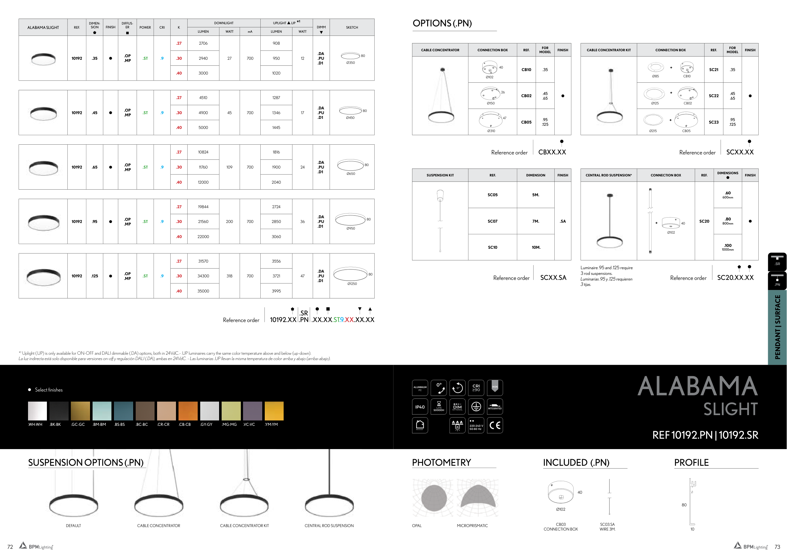 *1 Uplight (.UP) is only available for ON-OFF and DALI dimmable (.DA) options, both in 24VdC.- .UP luminaires carry the same color temperature above and below (up-down).