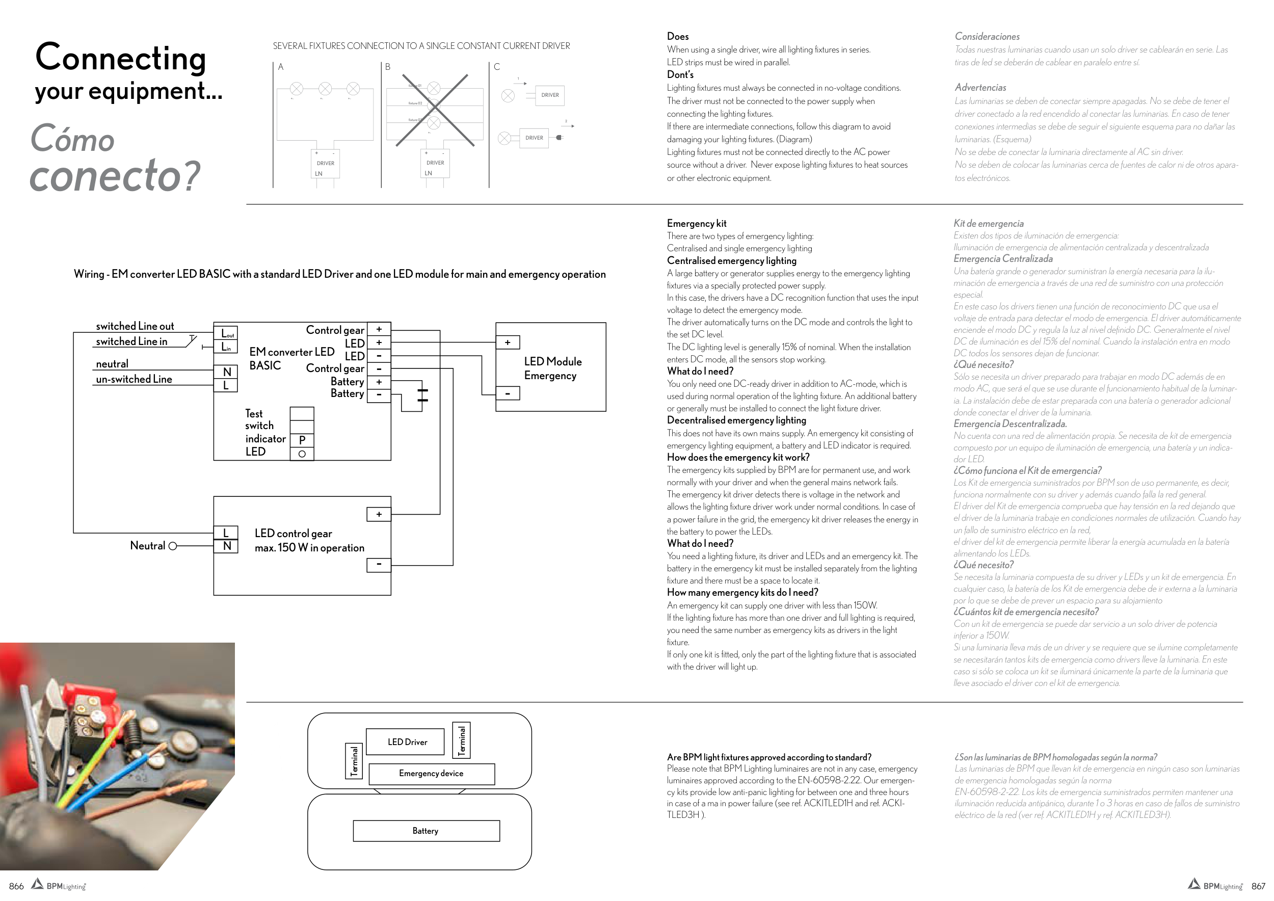 Wiring - EM converter LED BASIC with a standard LED Driver and one LED module for main and emergency operation