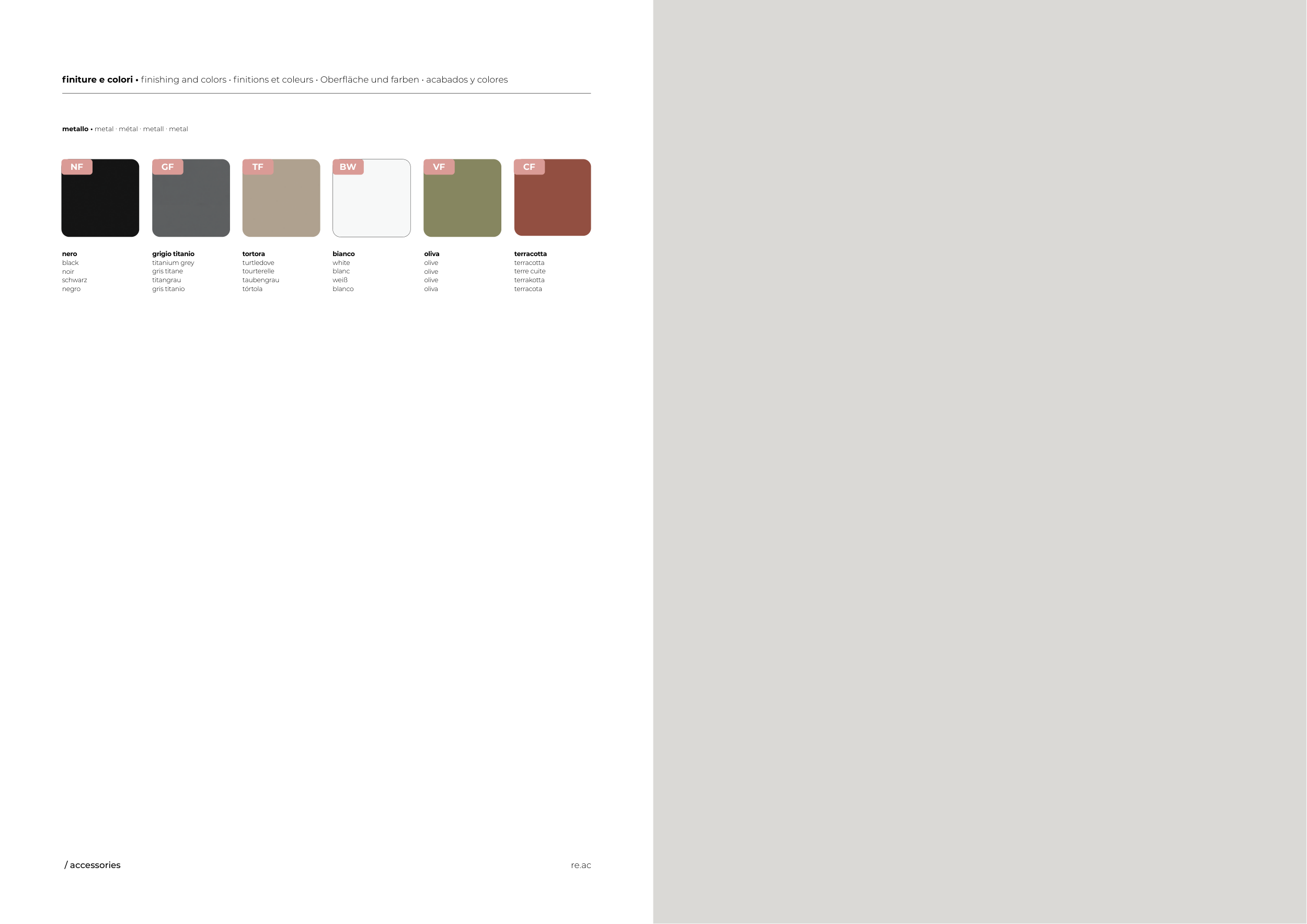 finiture e colori • finishing and colors • finitions et coleurs • Oberfläche und farben • acabados y colores