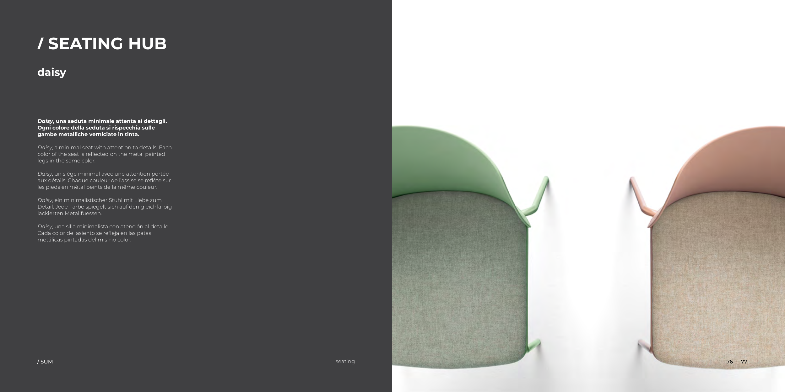 Daisy, a minimal seat with attention to details. Each