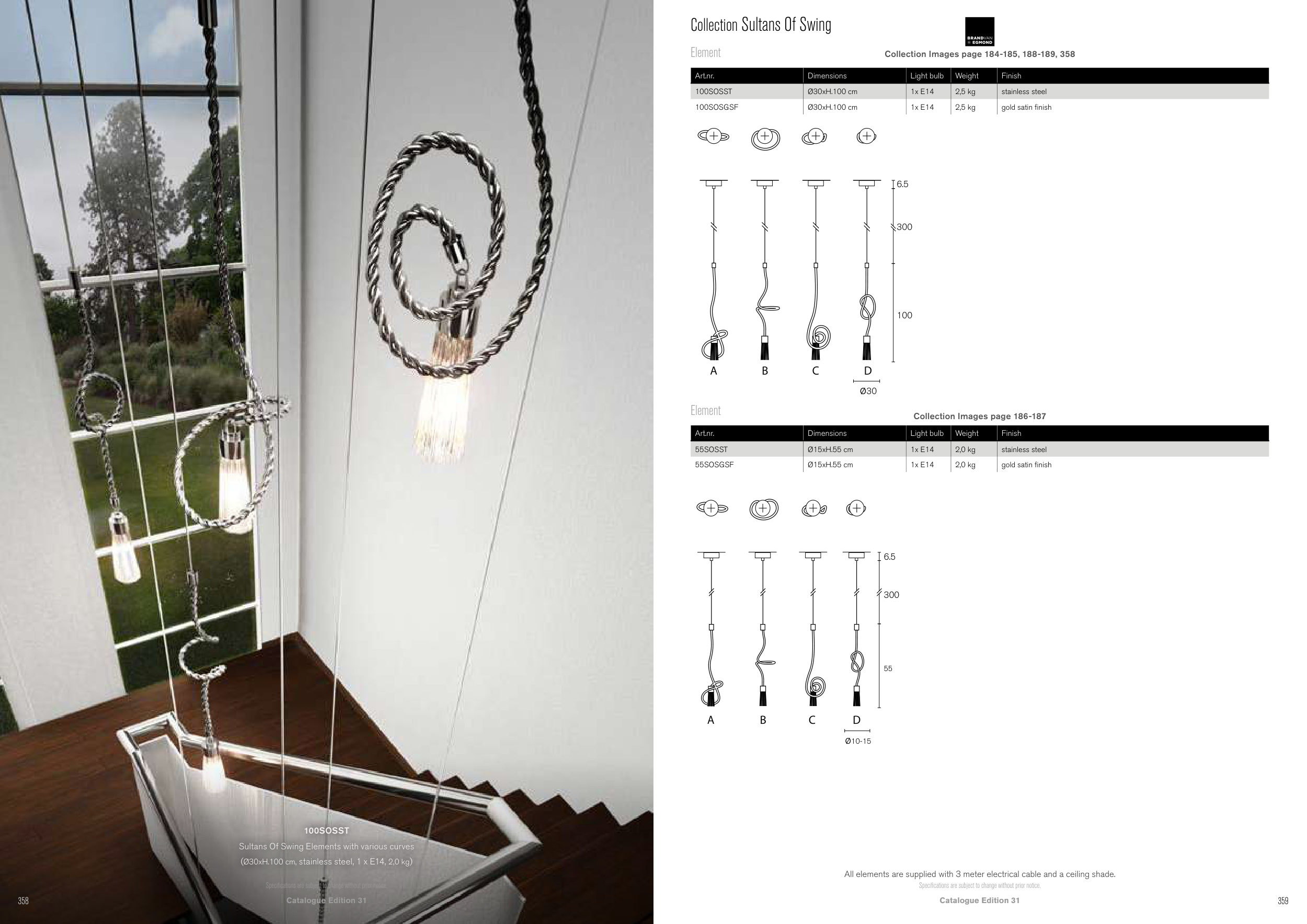 All elements are supplied with 3 meter electrical cable and a ceiling shade.