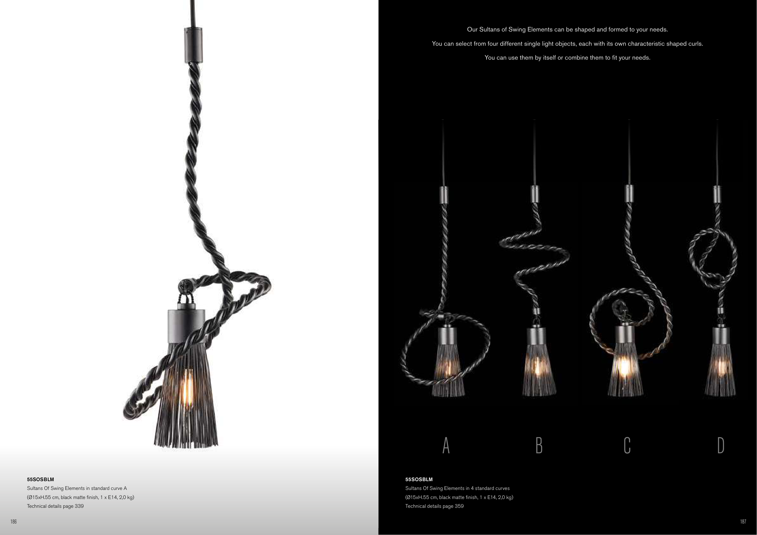 You can select from four different single light objects, each with its own characteristic shaped curls.