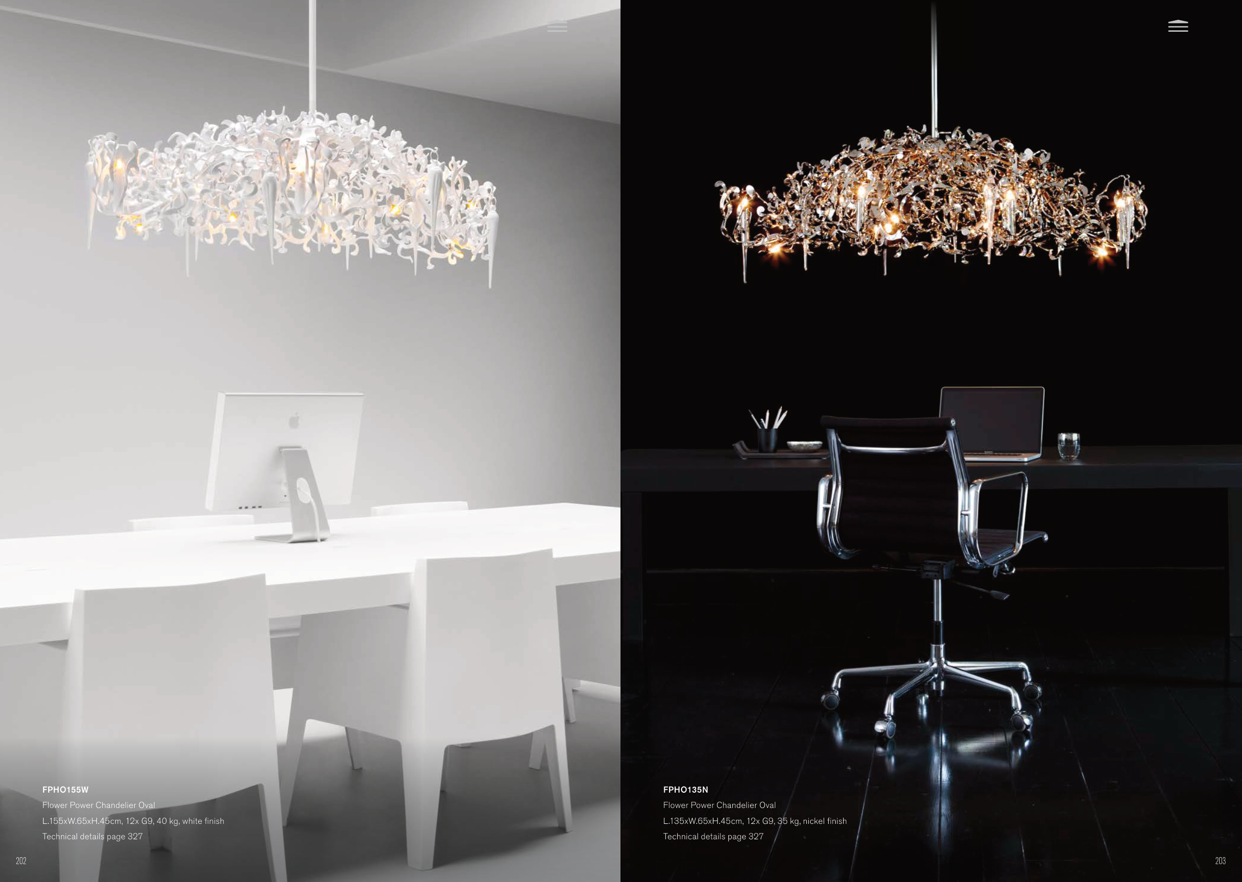 L.135xW.65xH.45cm, 12x G9, 35 kg, nickel finish