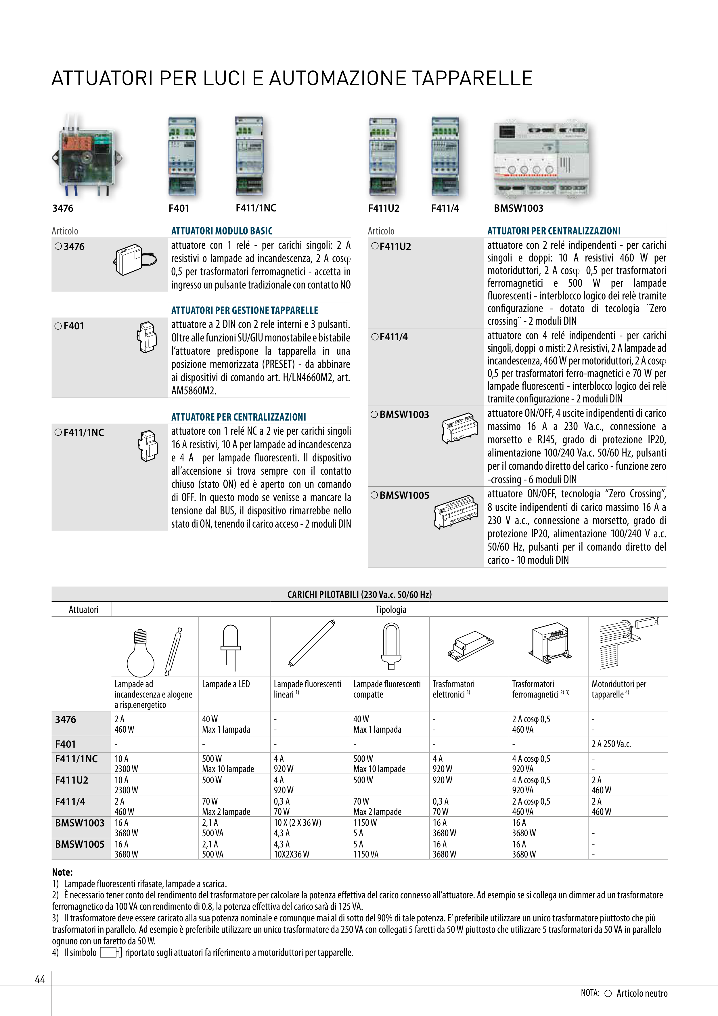 ATTUATORI PER LUCI E AUTOMAZIONE TAPPARELLE