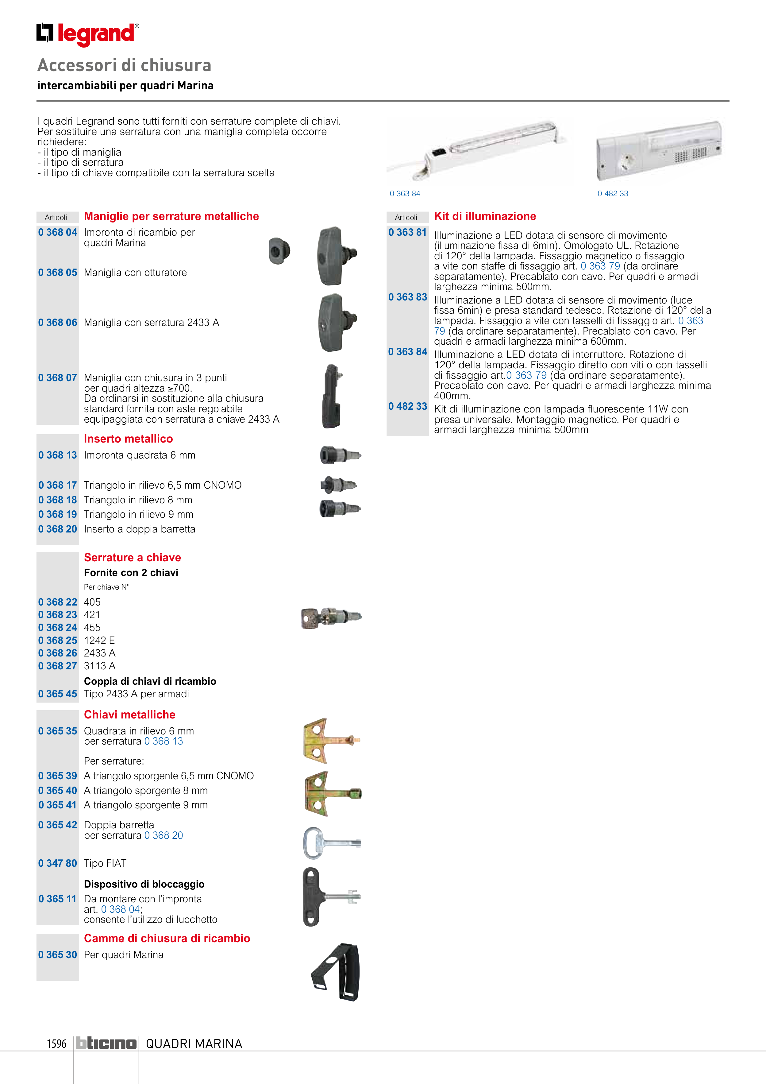 I quadri Legrand sono tutti forniti con serrature complete di chiavi.