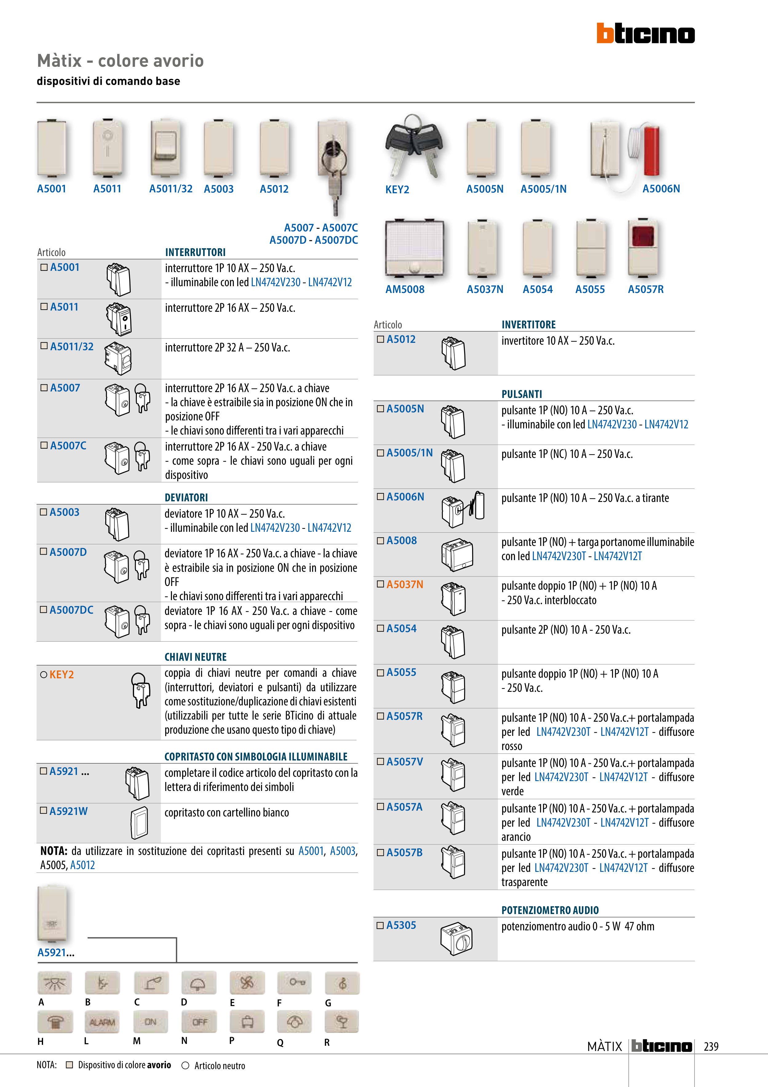 COPRITASTO CON SIMBOLOGIA ILLUMINABILE