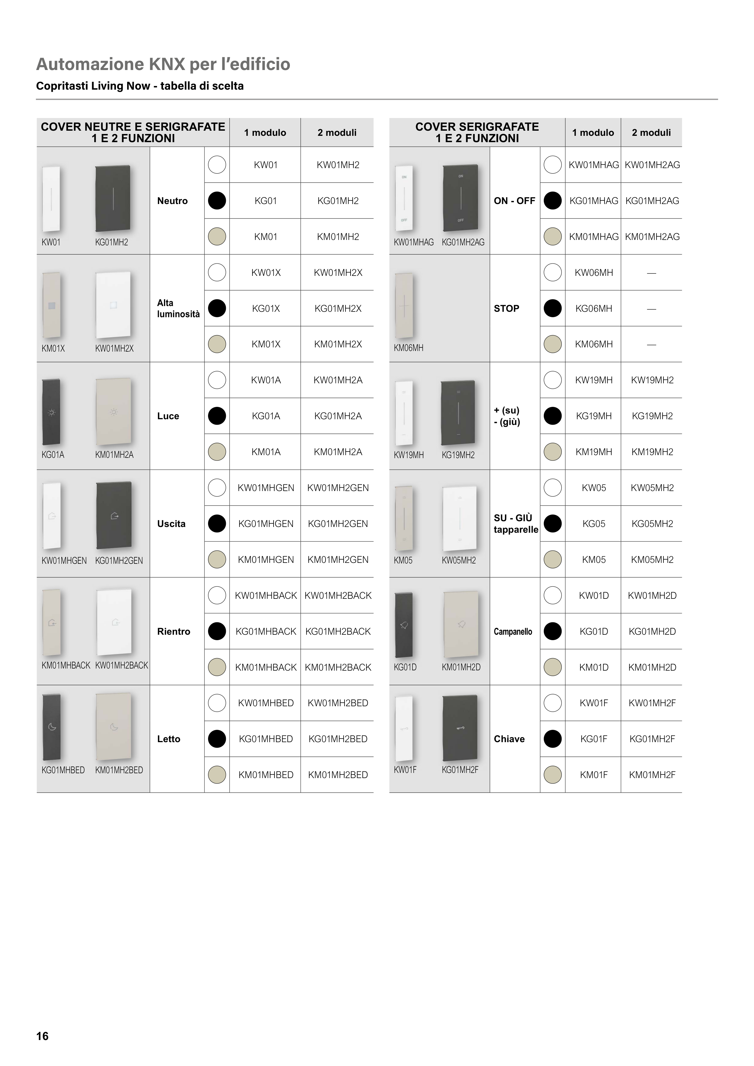 Copritasti Living Now - tabella di scelta