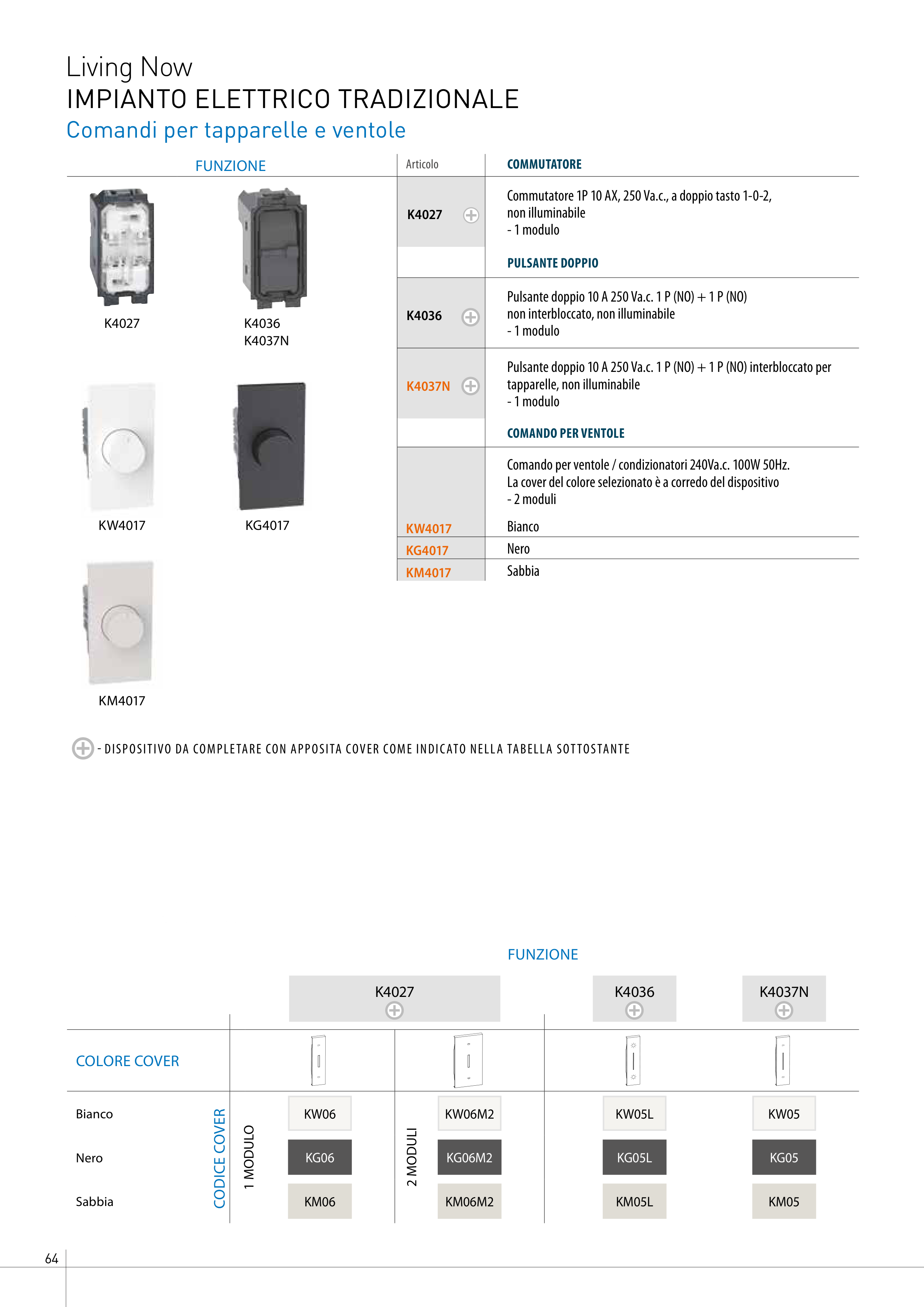 - DISPOSITIVO DA COMPLETARE CON APPOSITA COVER COME INDICATO NELLA TABELLA SOTTOSTANTE