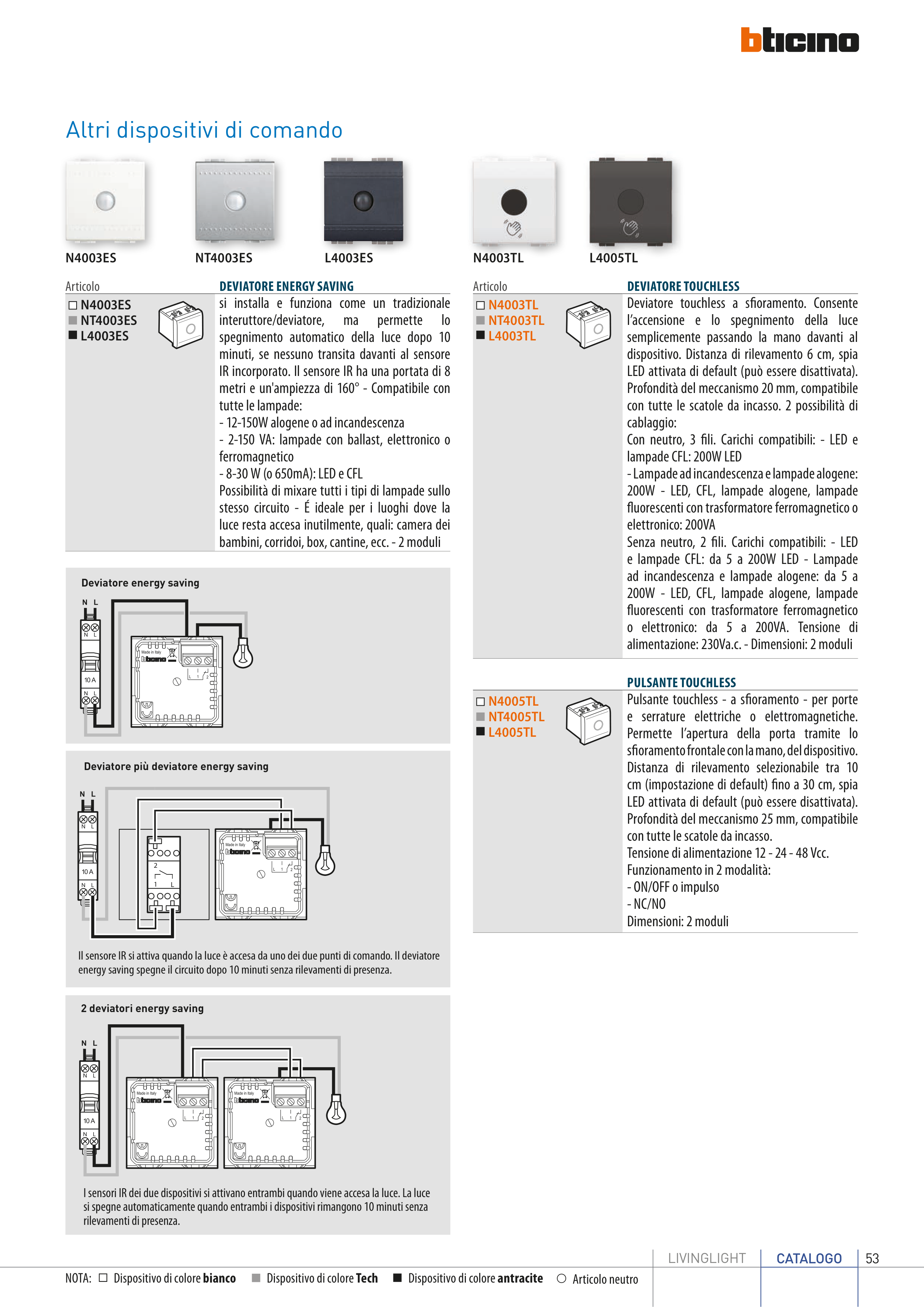 Con neutro, 3 f li. Carichi compatibili: - LED e