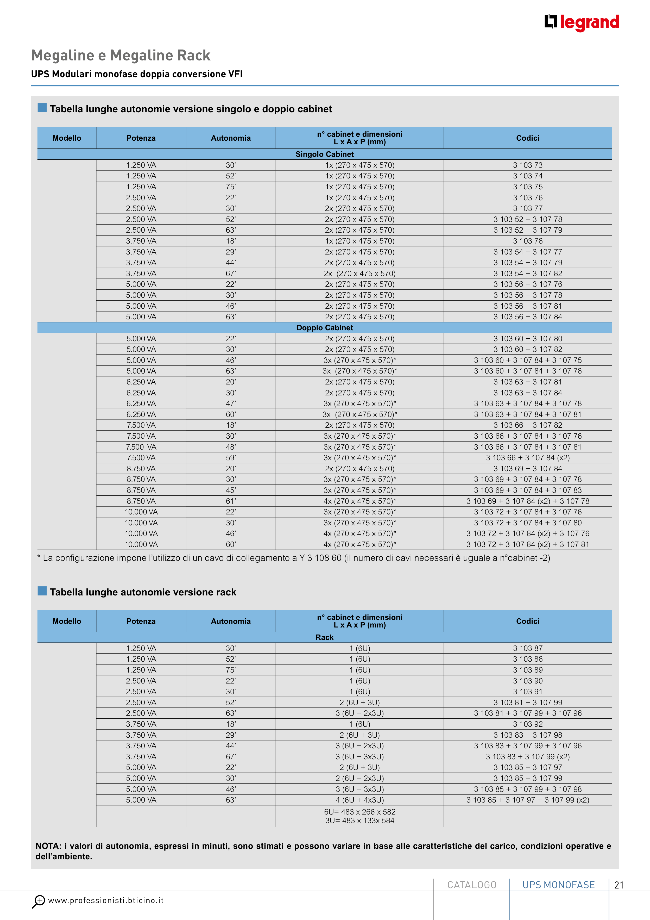 Каталог BTicino: UPS Uninterruptible Power Supplies General Catalogue, стр 21 с 72
