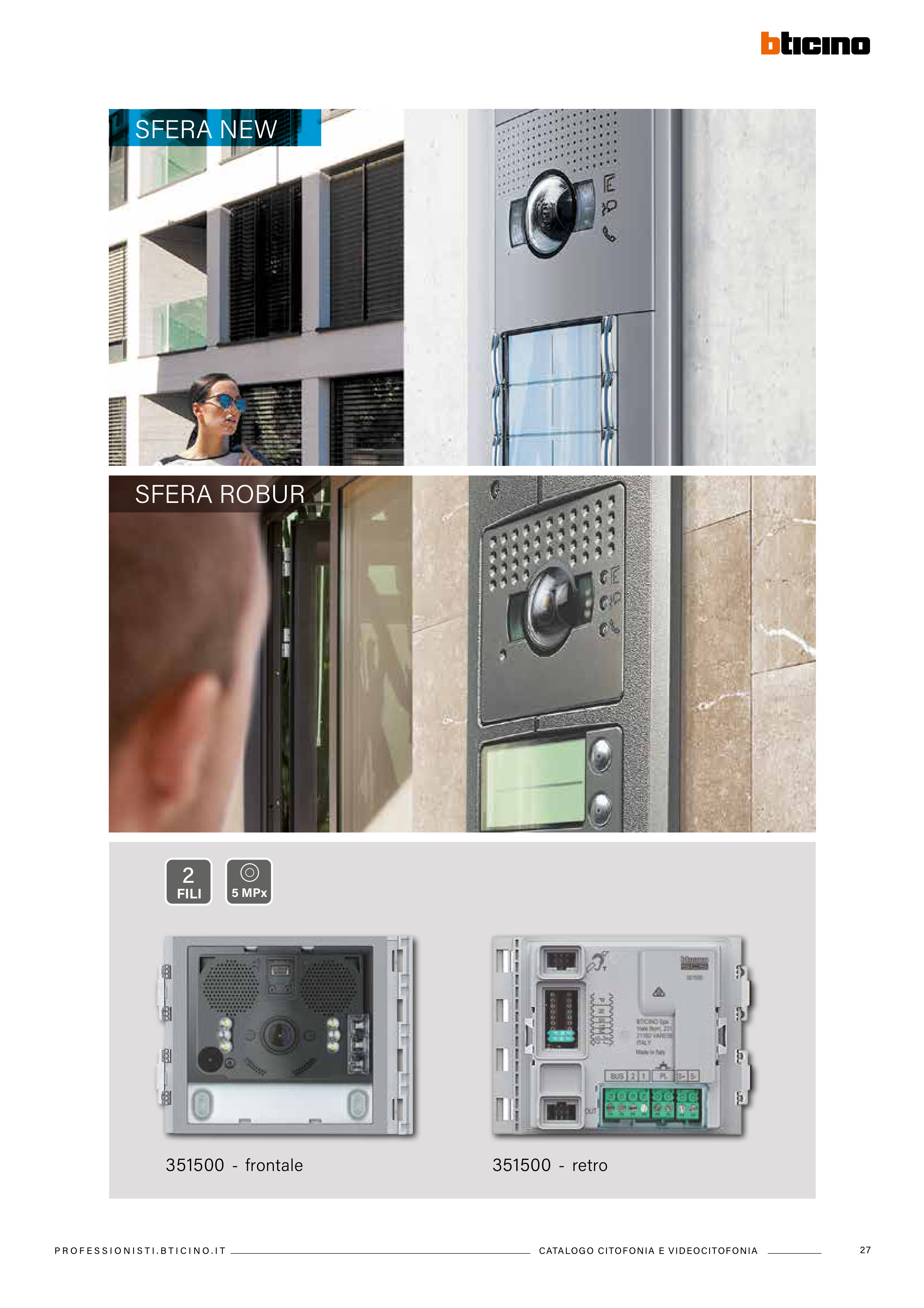 CATALOGO CITOFONIA E VIDEOCITOFONIA P R O F E S S I O N I S T I . B T I C I N O . I T 27 SFERA NEW SFERA ROBUR 351500 - frontale 351500 - retro FILI 5 MPx