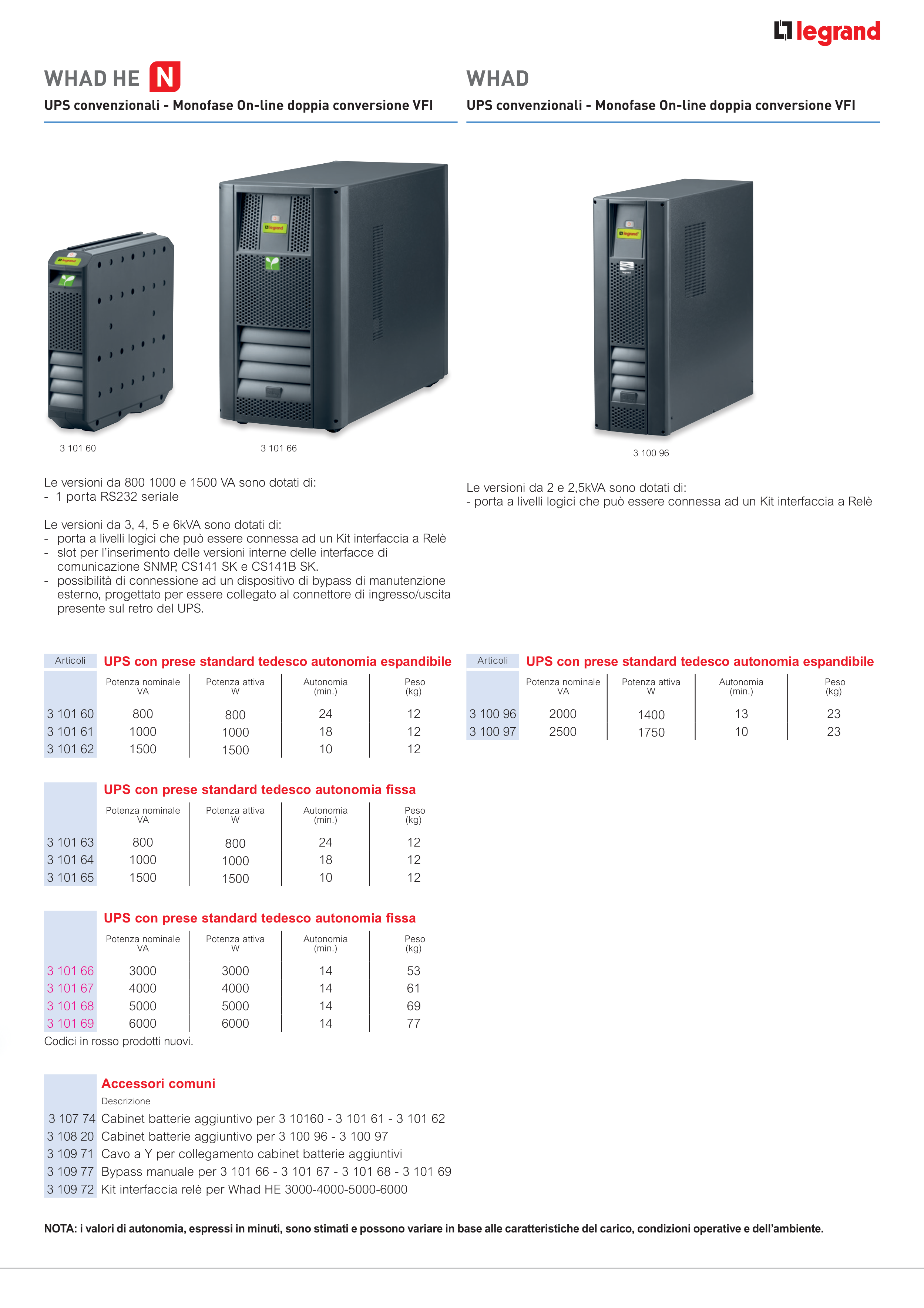 NOTA: i valori di autonomia, espressi in minuti, sono stimati e possono variare in base alle caratteristiche del carico, condizioni operative e dell’ambiente.