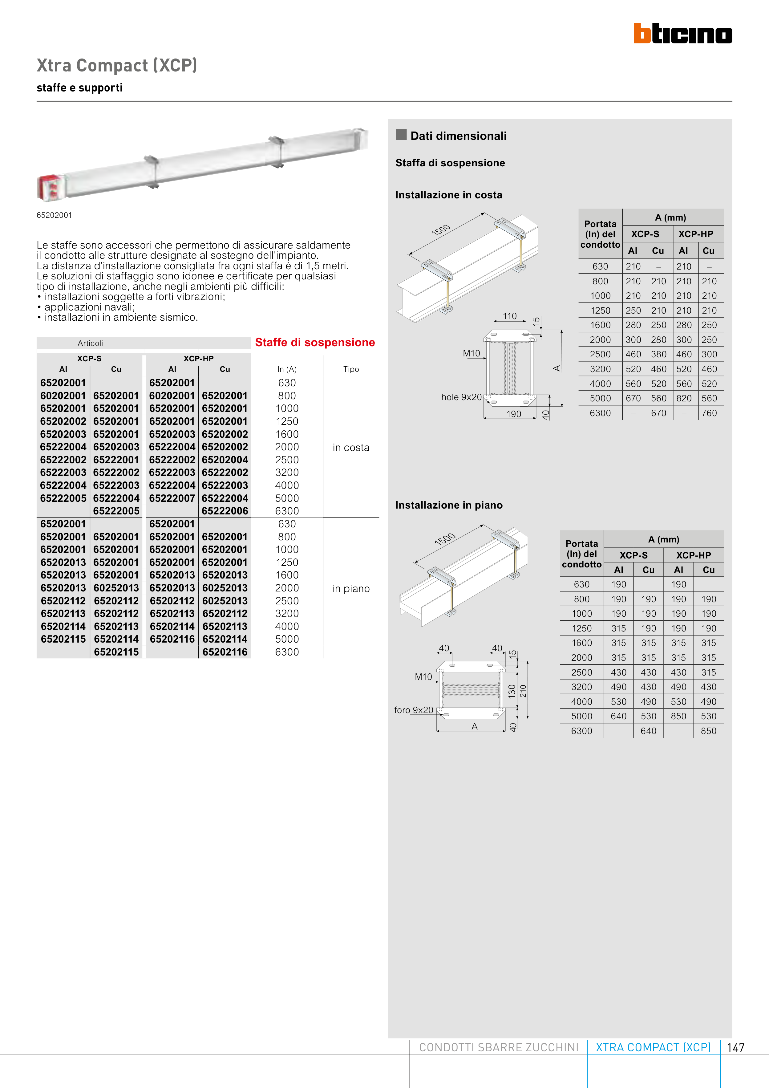 La distanza d’installazione consigliata fra ogni staffa è di 1,5 metri.