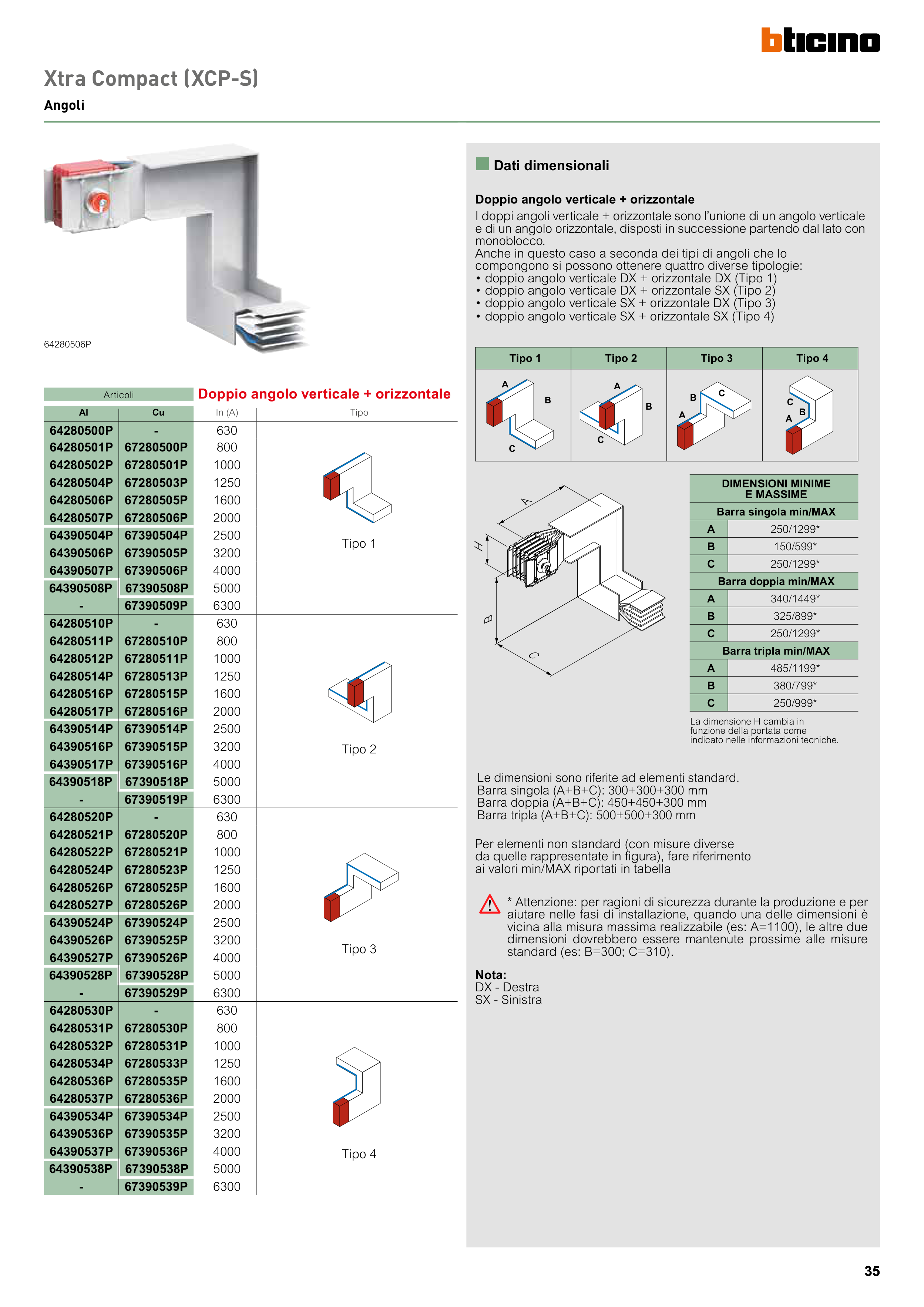 • doppio angolo verticale SX + orizzontale DX (Tipo 3)
