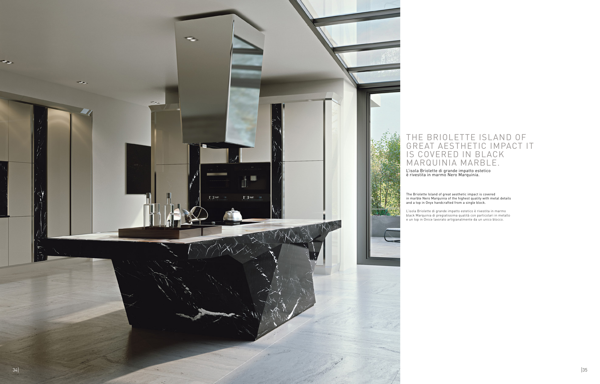 L’isola Briolette di grande impatto estetico è rivestita in marmo