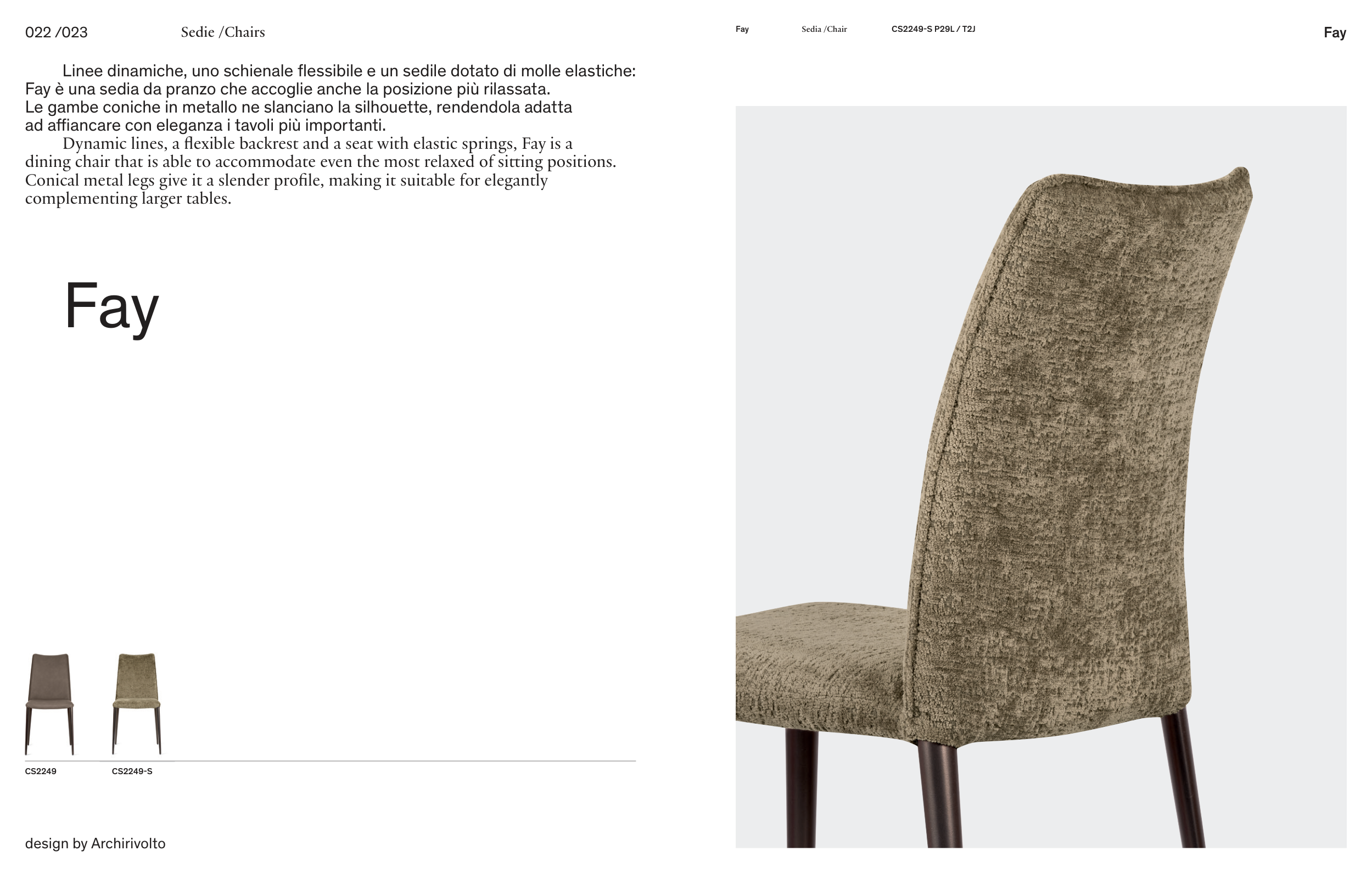 Fay è una sedia da pranzo che accoglie anche la posizione più rilassata.