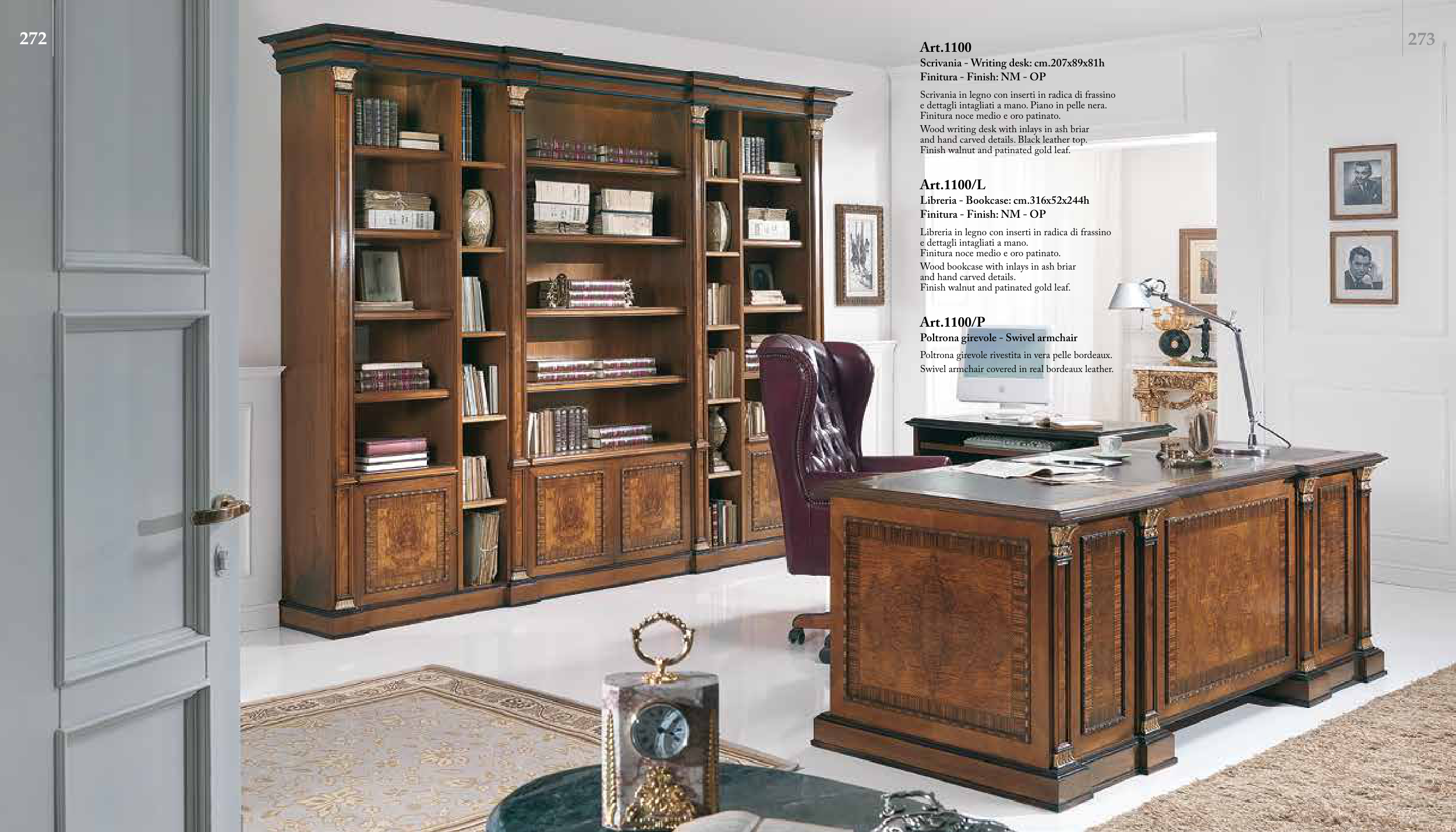 Finitura noce medio e oro patinato.