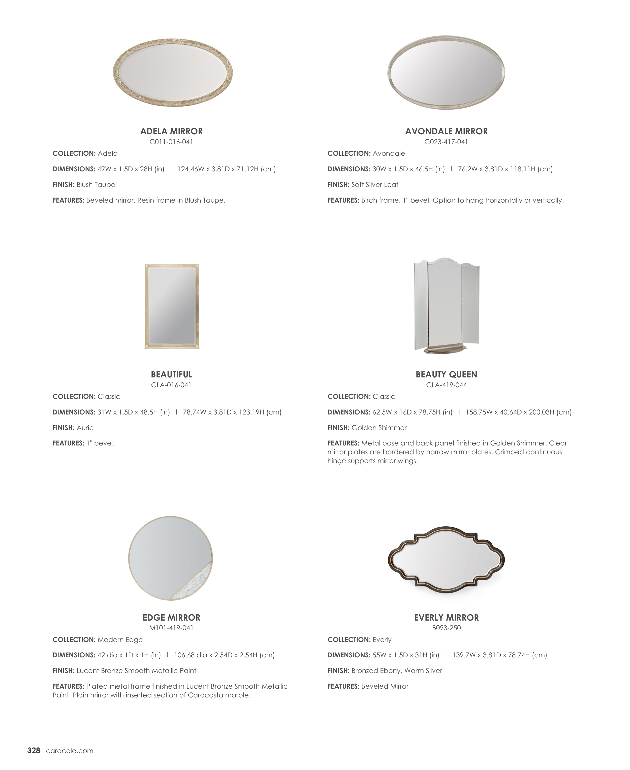 FEATURES: Beveled mirror. Resin frame in Blush Taupe.