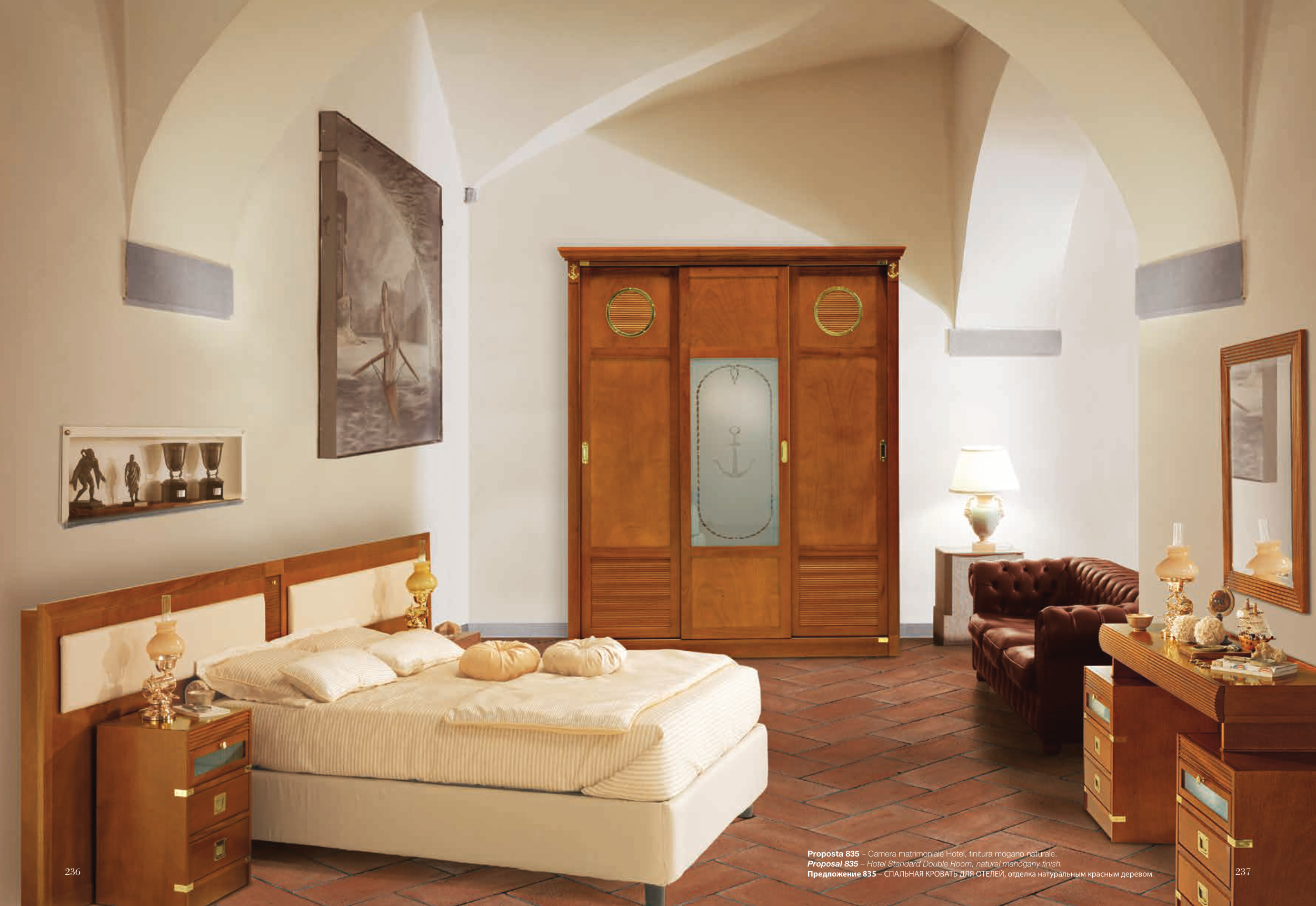 Proposta 835 – Camera matrimoniale Hotel, finitura mogano naturale.
