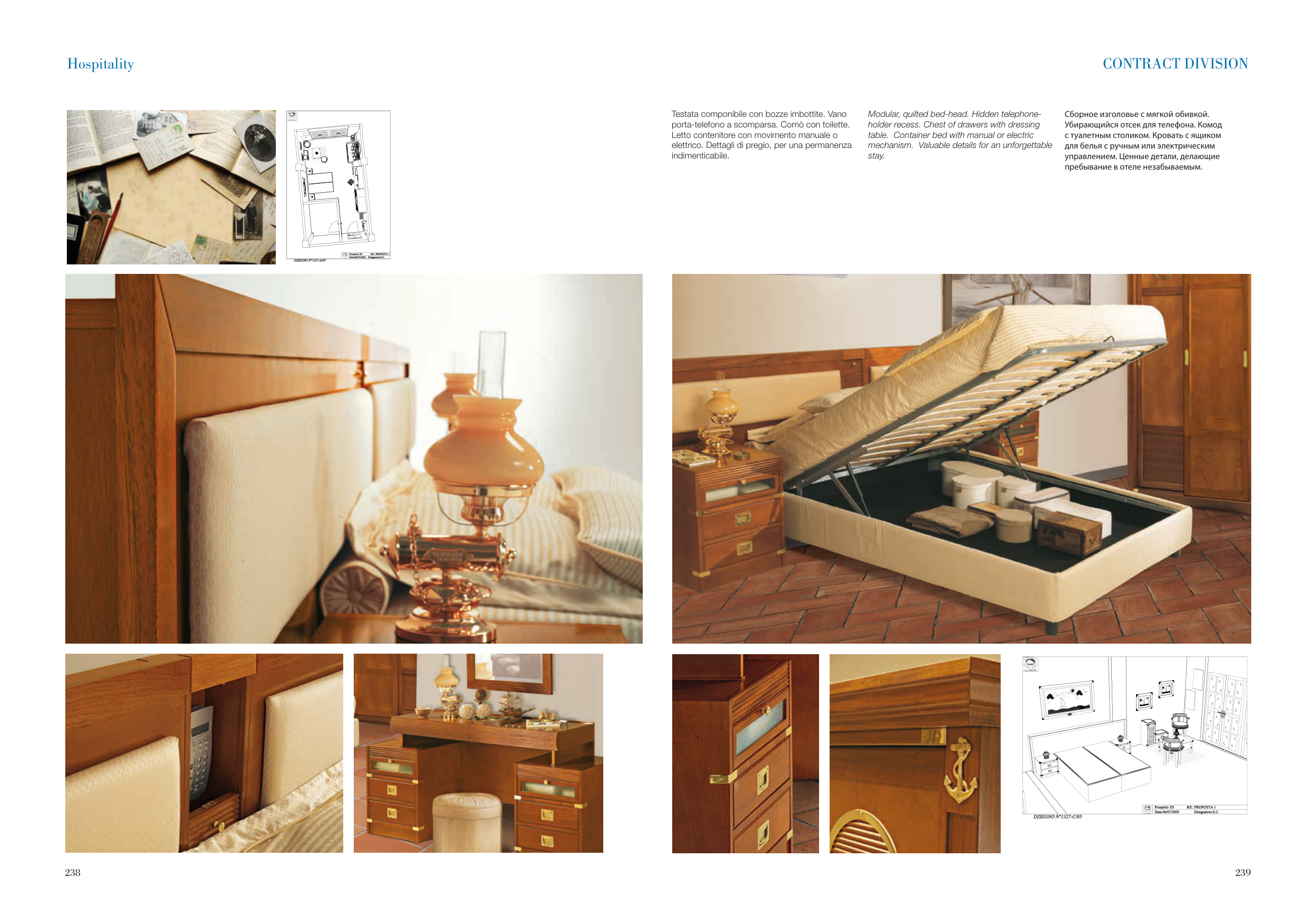 porta-telefono a scomparsa. Comò con toilette.