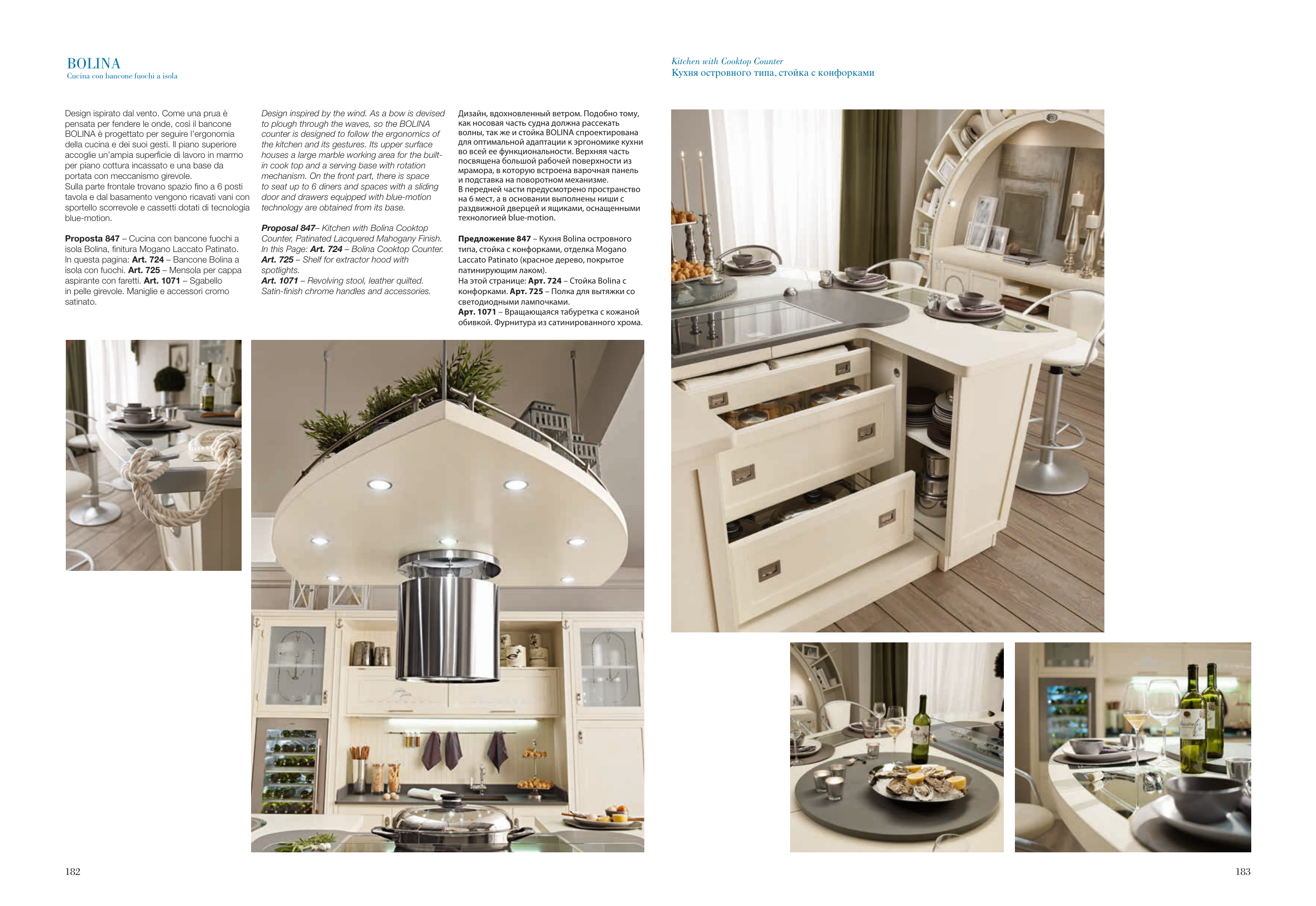 isola Bolina, finitura Mogano Laccato Patinato.