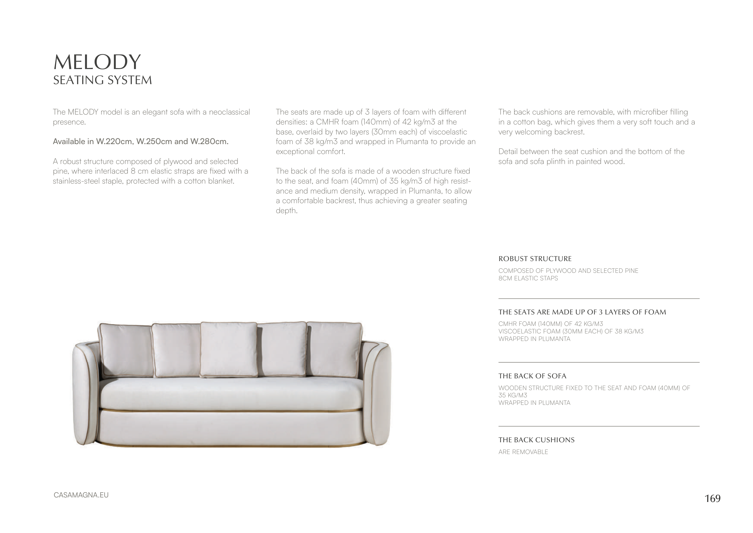 The MELODY model is an elegant sofa with a neoclassical