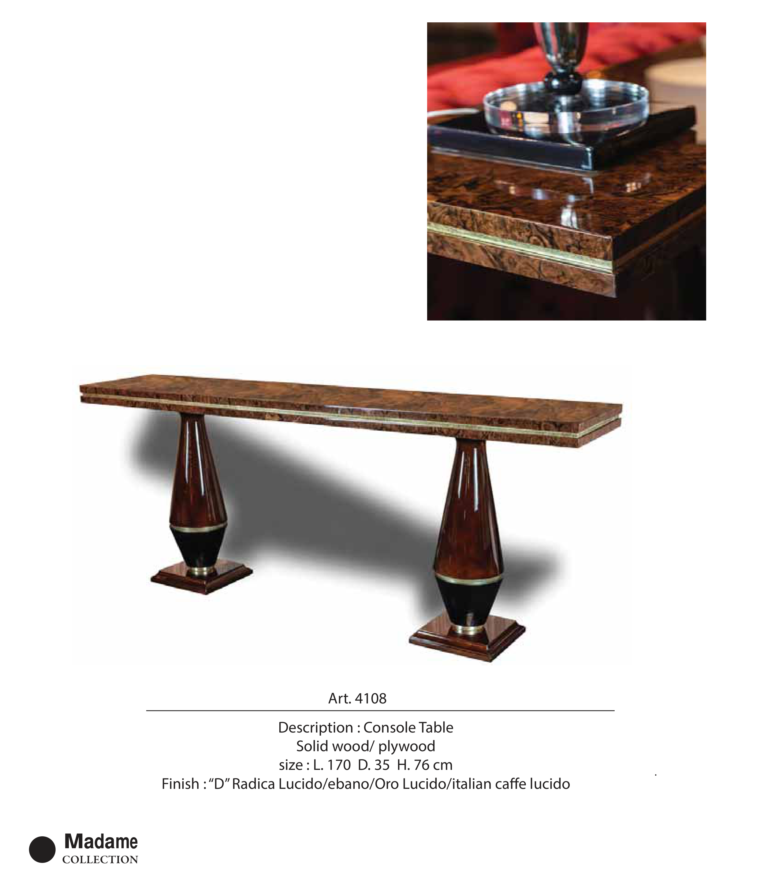 Finish : “D” Radica Lucido/ebano/Oro Lucido/italian caffe lucido