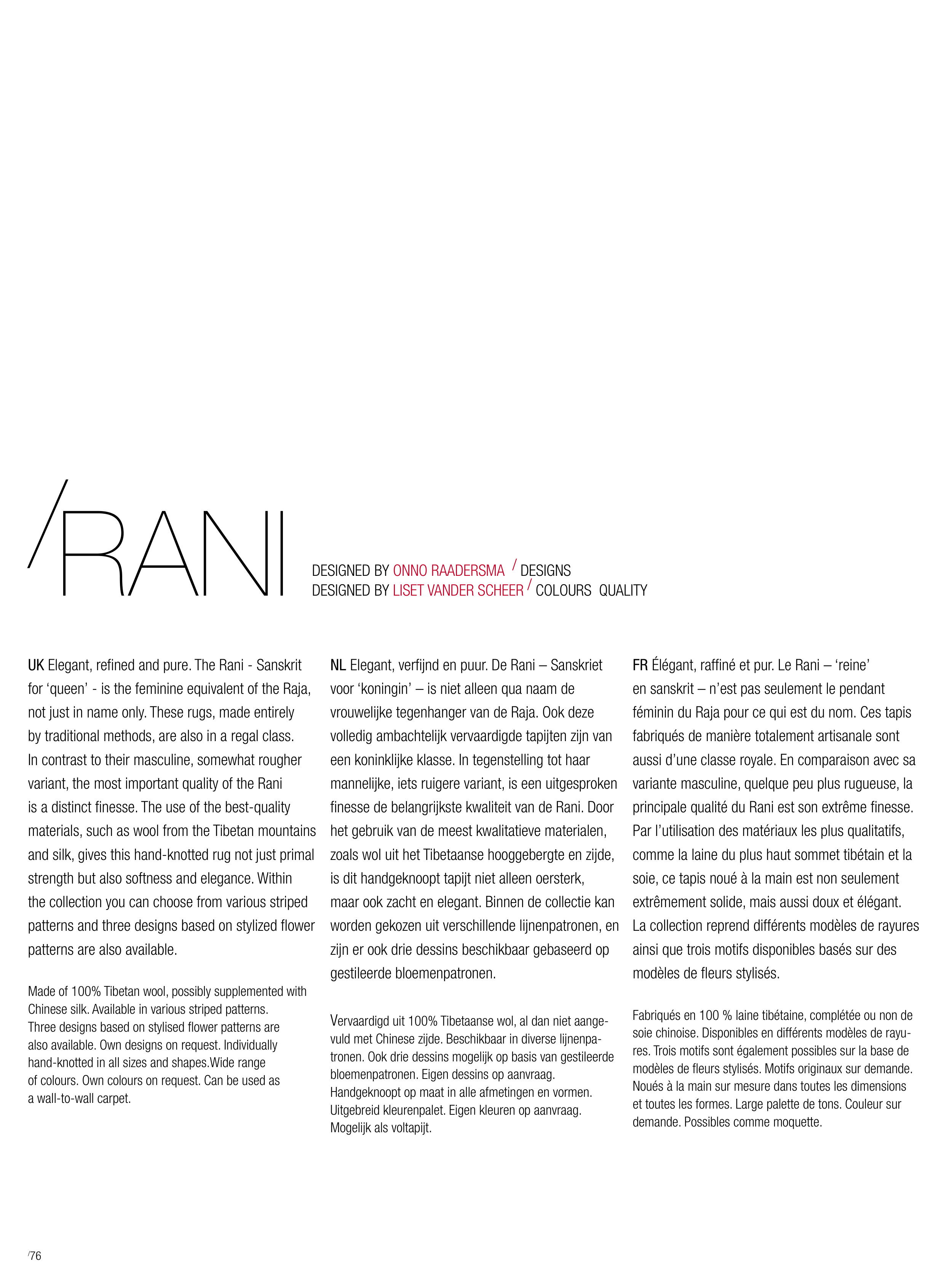 DESIGNED BY LISET VANDER SCHEER / COLOURS QUALITY