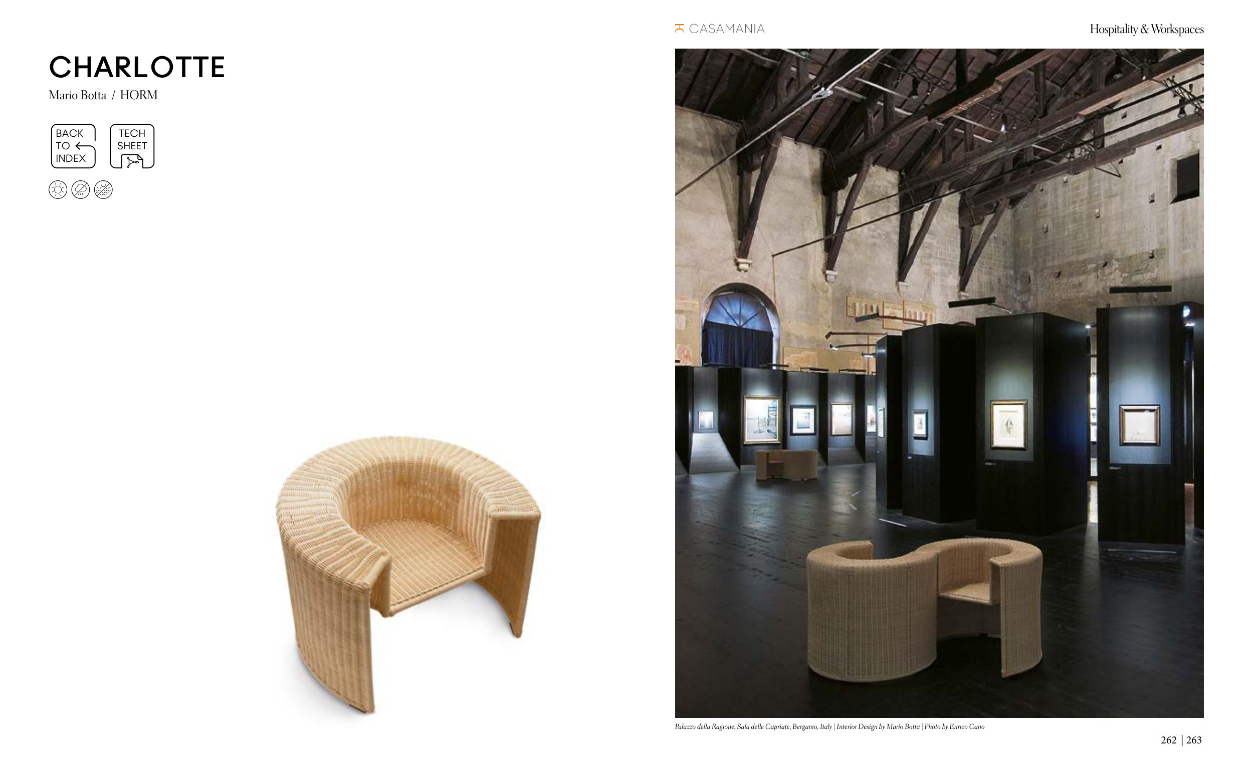 CHARLOTTE Mario Botta / HORM Hospitality & Workspaces 262 | 263 Palazzo della Ragione, Sala delle Capriate, Bergamo, Italy | Interior Design by Mario Botta | Photo by Enrico Cano BACK TO INDEX TECH SHEET