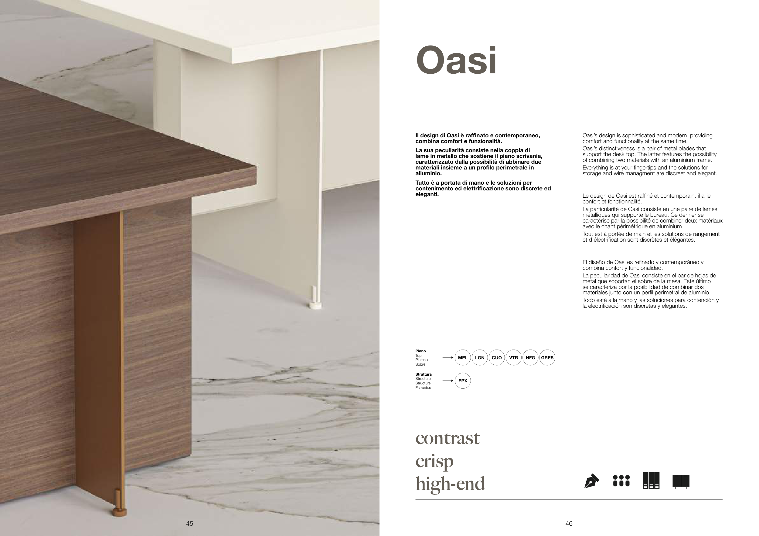 Il design di Oasi è raffinato e contemporaneo,