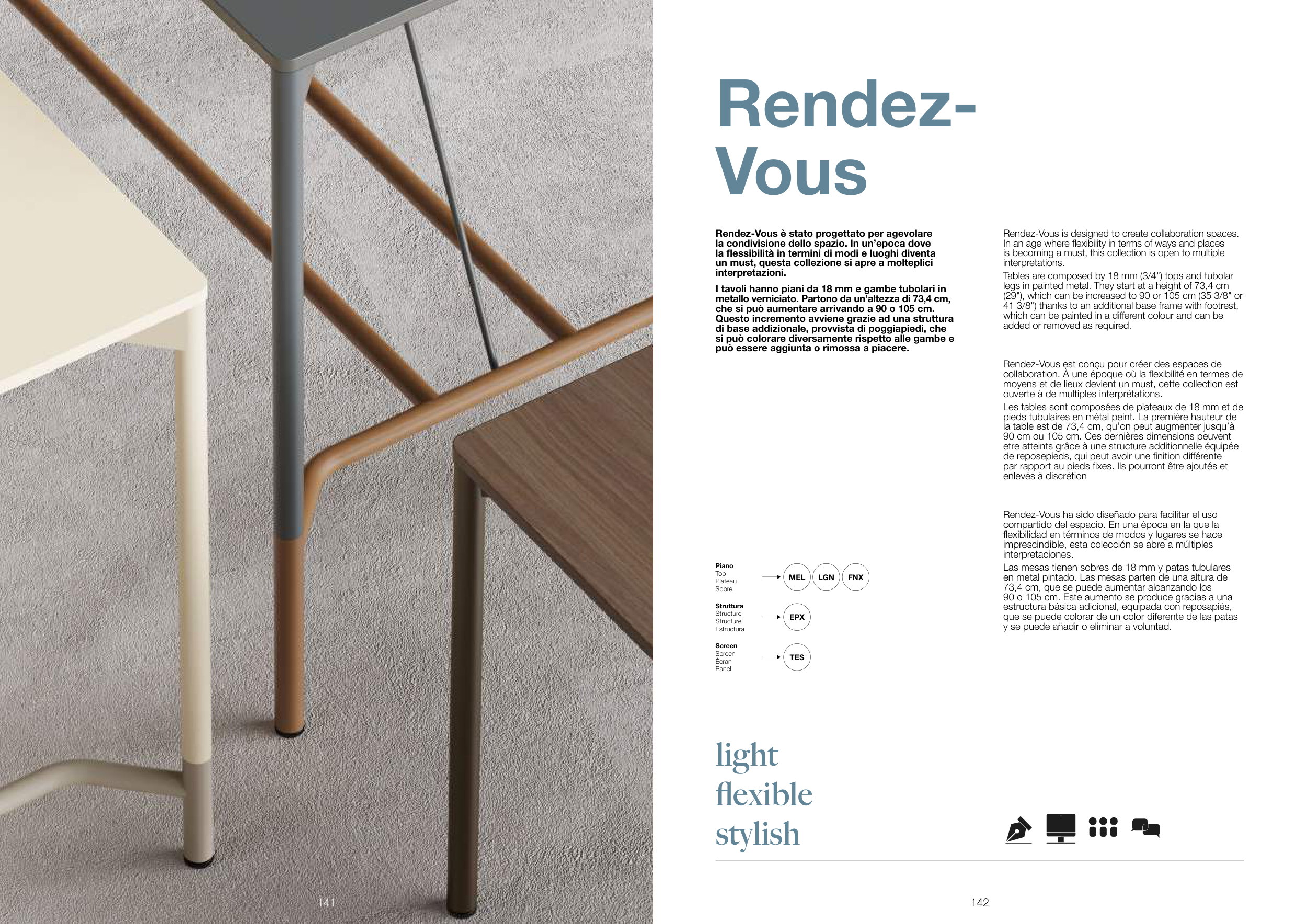 Tables are composed by 18 mm (3/4") tops and tubolar