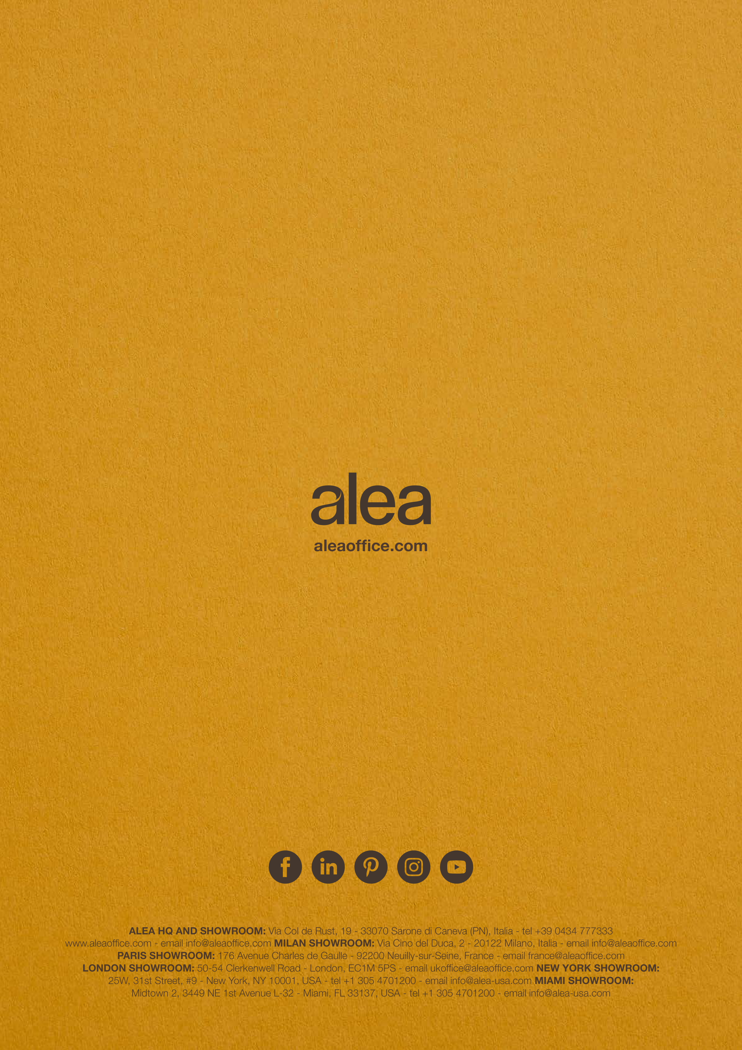 LONDON SHOWROOM: 50-54 Clerkenwell Road - London, EC1M 5PS - email ukoffice@aleaoffice.com NEW YORK SHOWROOM: