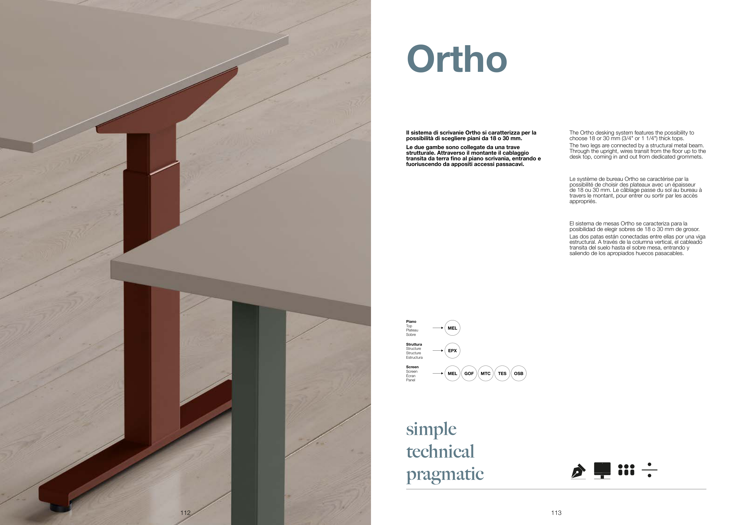 Il sistema di scrivanie Ortho si caratterizza per la