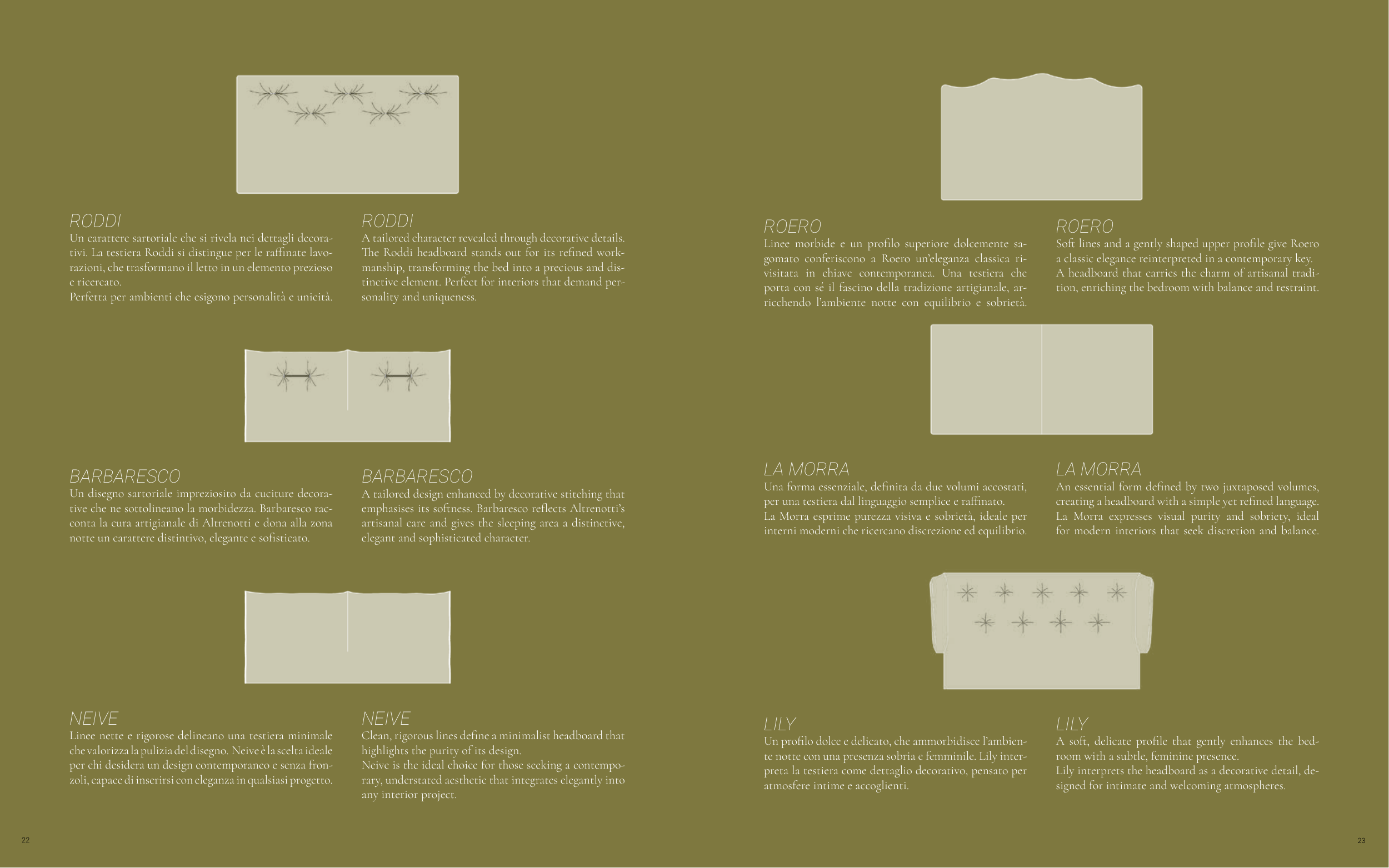 tivi. La testiera Roddi si distingue per le raffinate lavo-