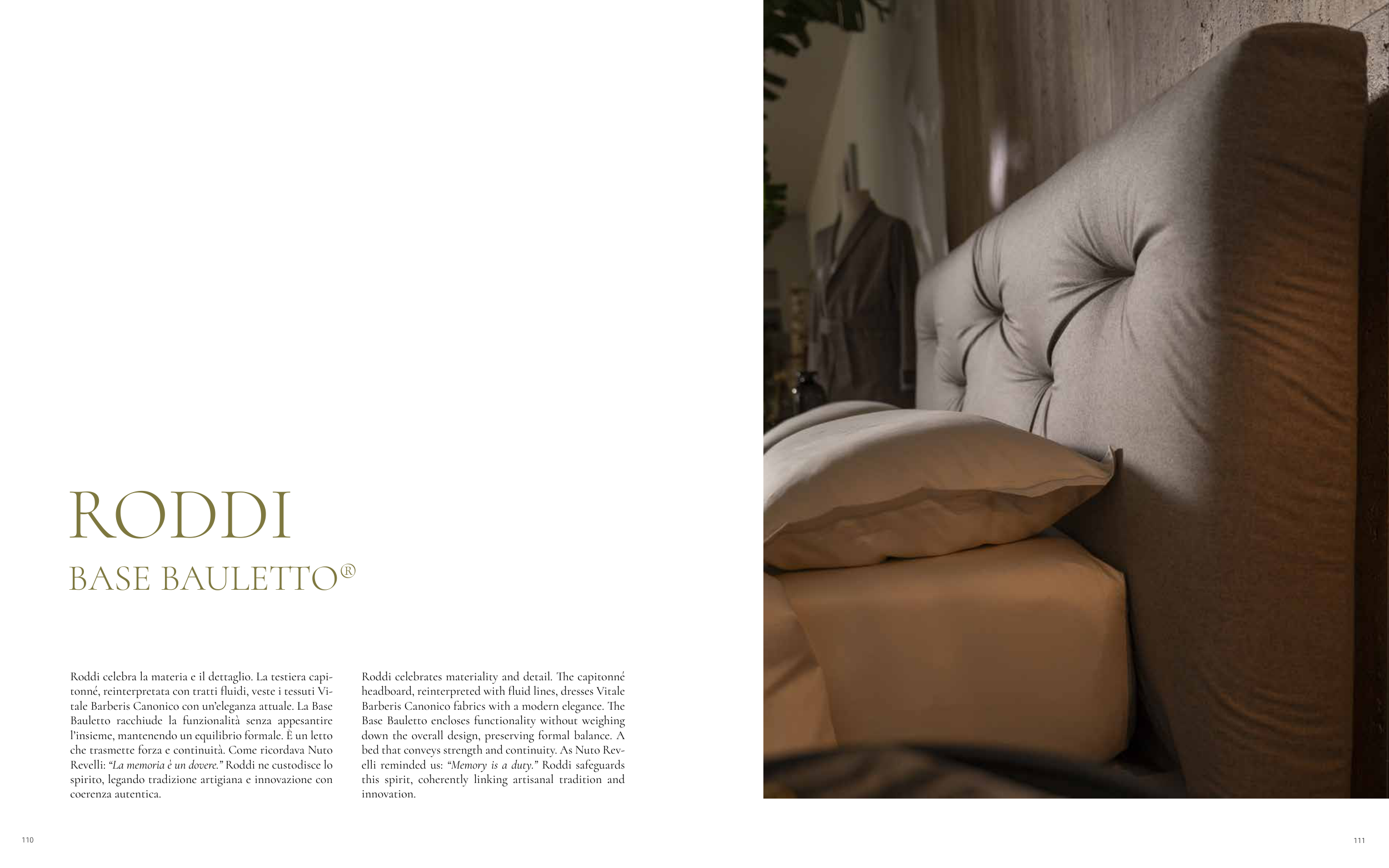 Roddi celebrates materiality and detail. The capitonné