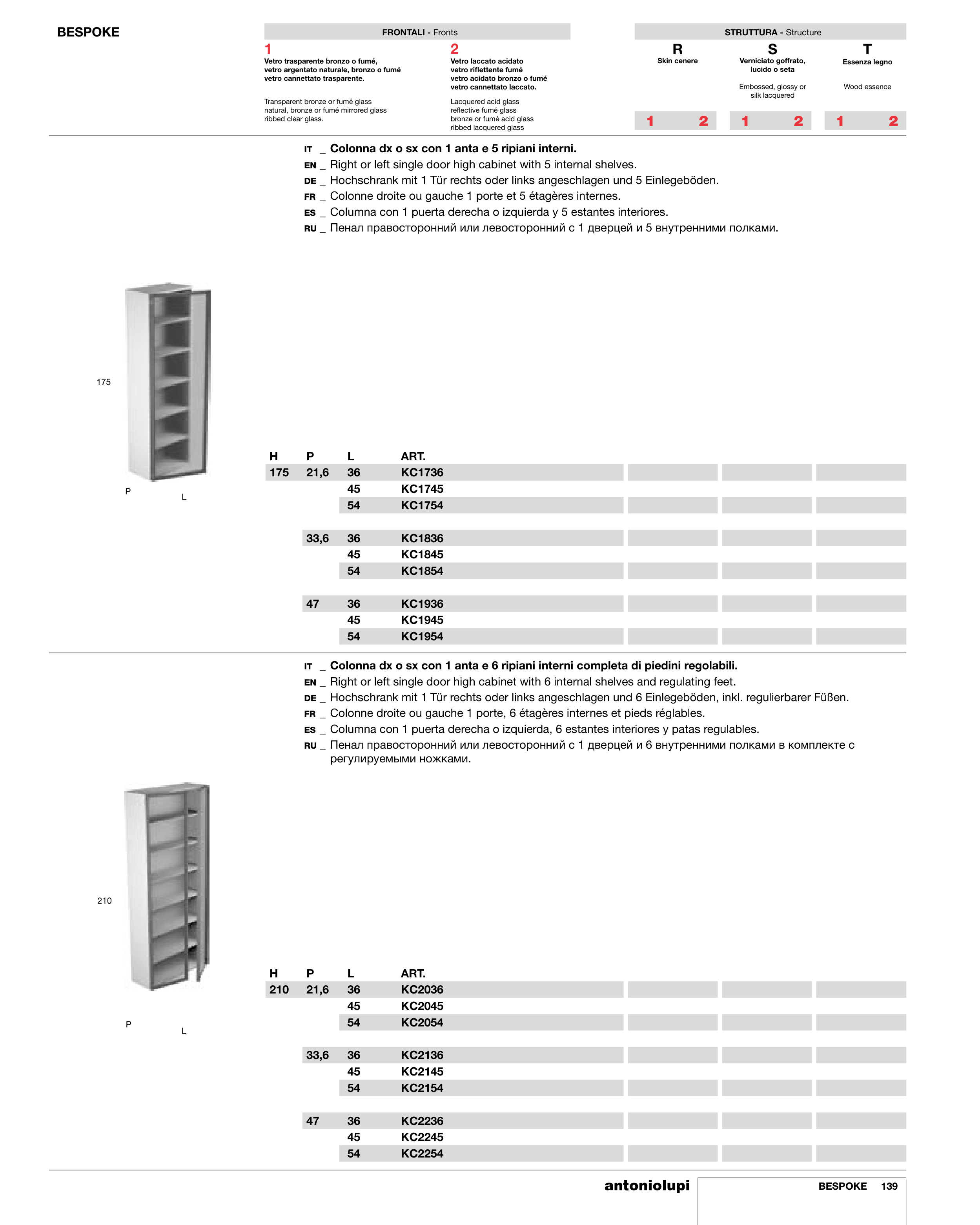 IT _ Colonna dx o sx con 1 anta e 6 ripiani interni completa di piedini regolabili.