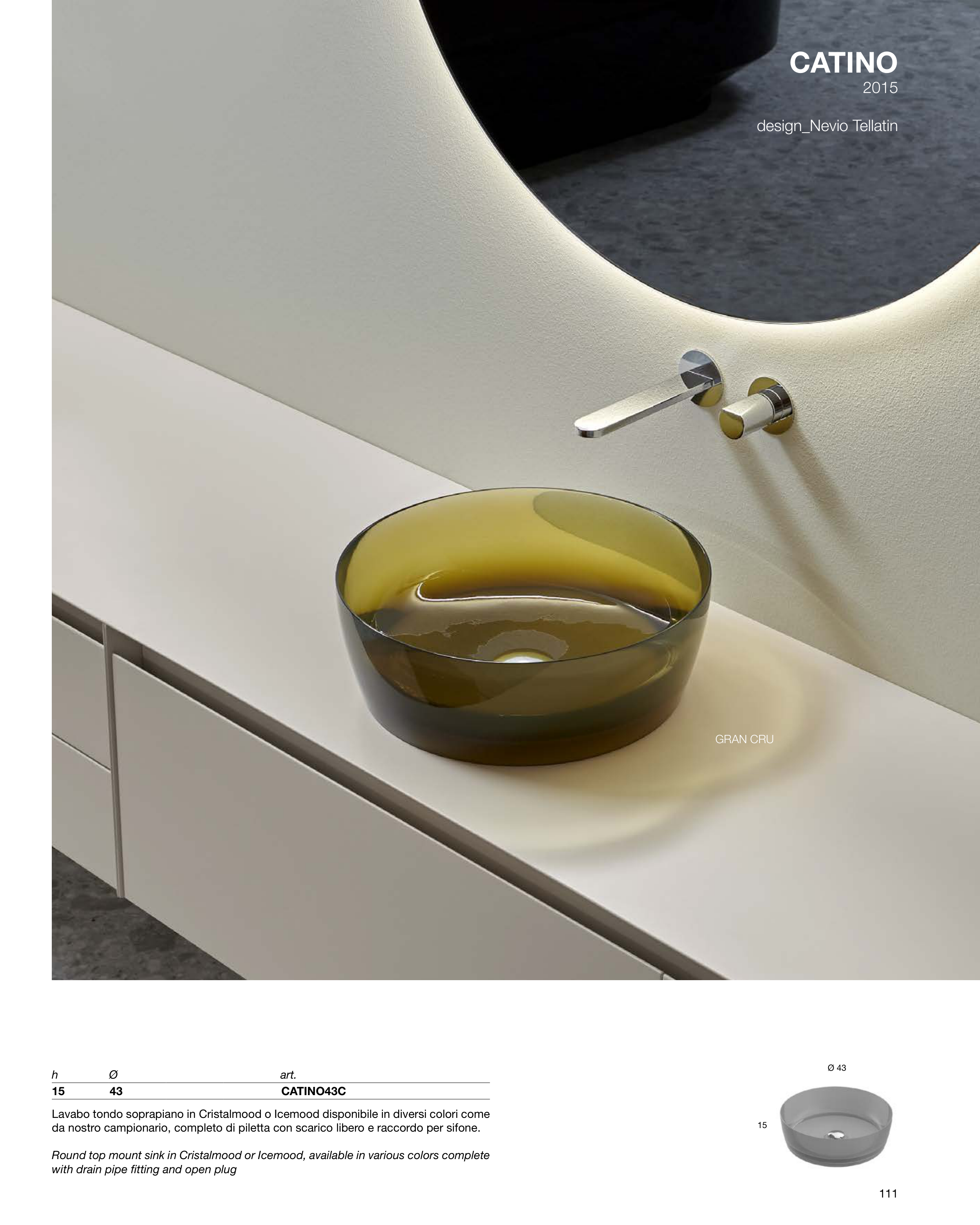 Round top mount sink in Cristalmood or Icemood, available in various colors complete