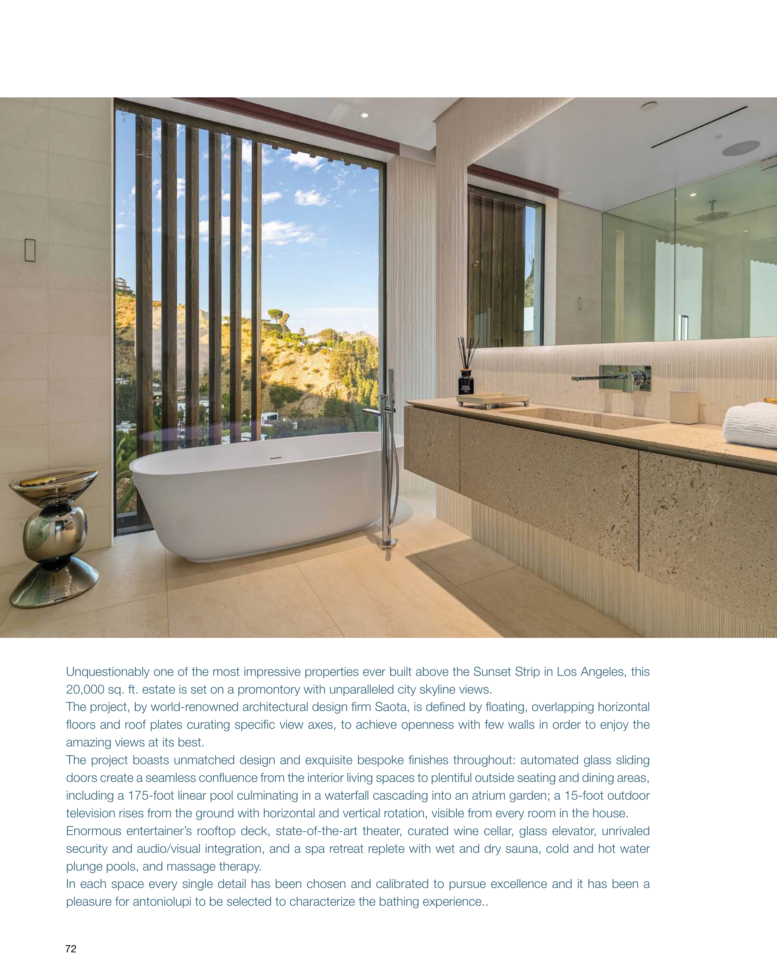 security and audio/visual integration, and a spa retreat replete with wet and dry sauna, cold and hot water