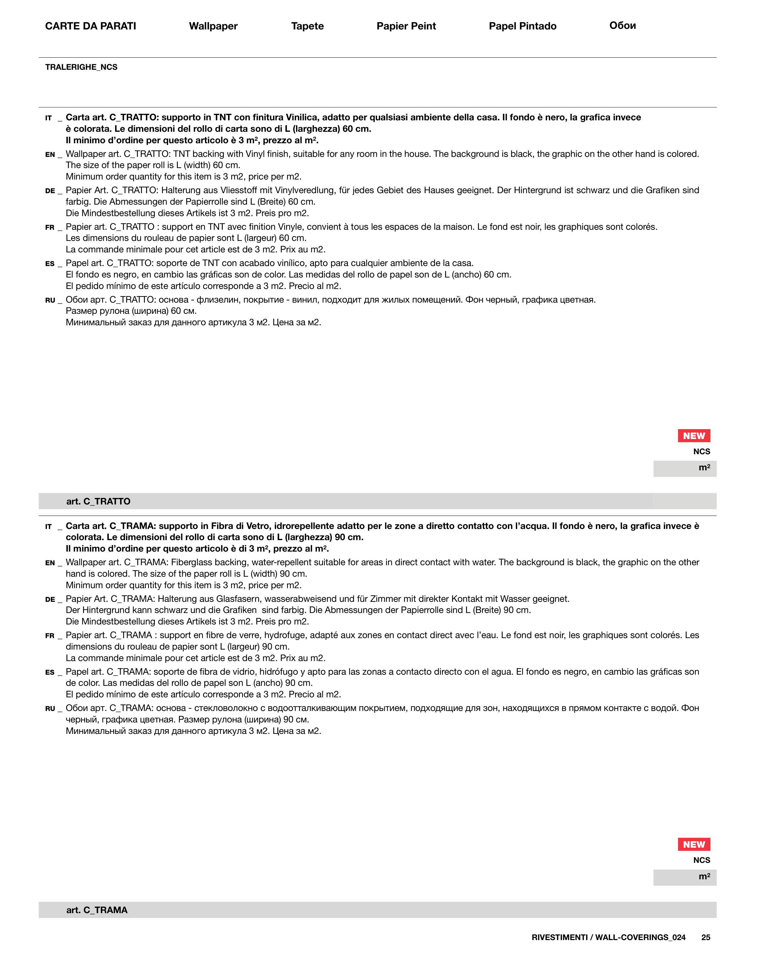 RU _ Обои арт. C_TRAМА: основа - стекловолокно с водоотталкивающим покрытием, подходящие для зон, находящихся в прямом контакте с водой. Фон