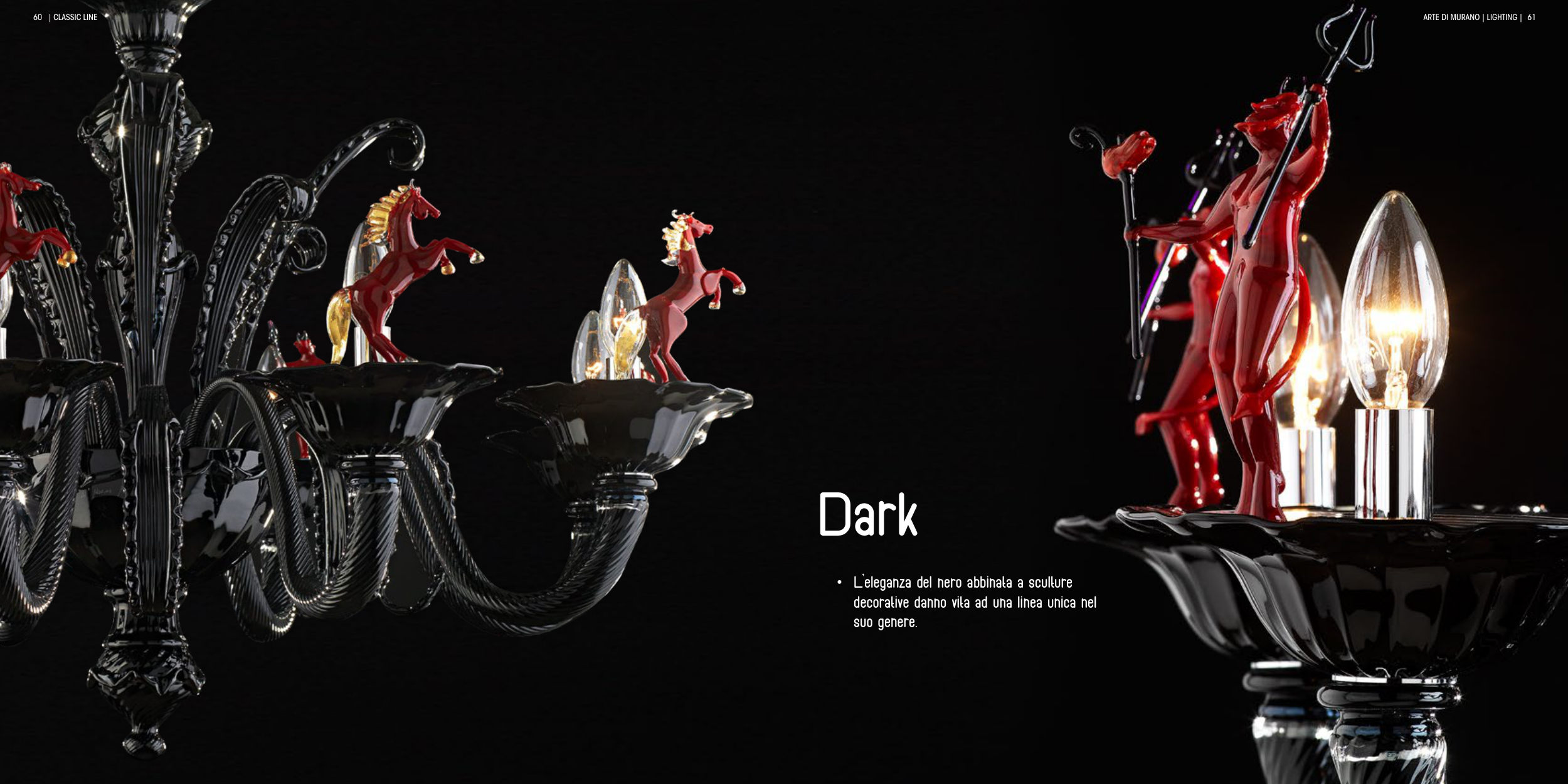Dark • L’eleganza del nero abbinata a sculture decorative danno vita ad una linea unica nel suo genere. 60 ARTE DI MURANO | LIGHTING | 61 | CLASSIC LINE