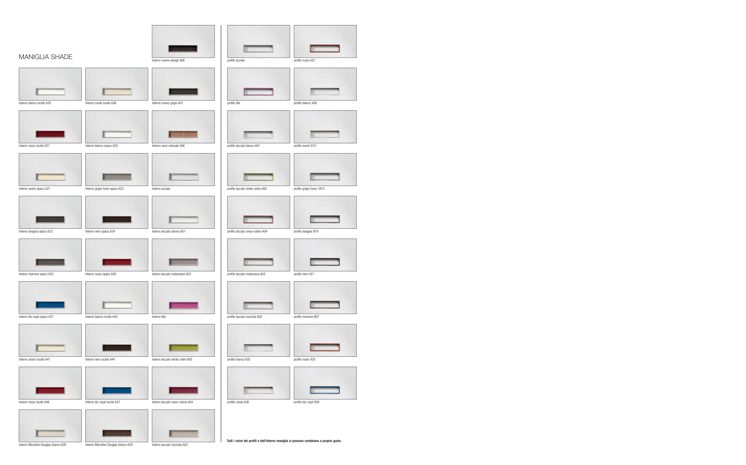 Tutti i colori dei profili e dell’interno maniglia si possono combinare a proprio gusto.