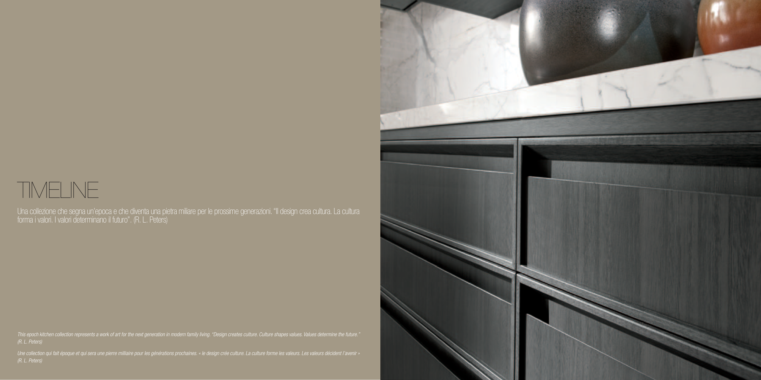 This epoch kitchen collection represents a work of art for the next generation in modern family living. “Design creates culture. Culture shapes values. Values determine the future.”