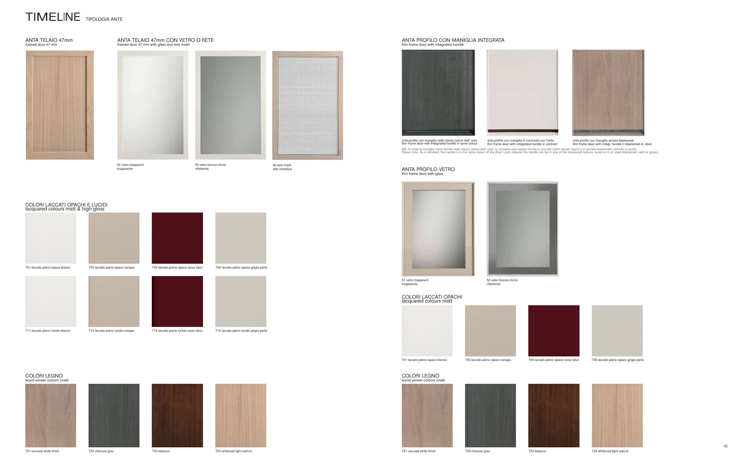 NB: Di serie la maniglia viene fornita nello stesso colore dell' anta. su richiesta può essere fornita in uno dei colori laccati, legno o in acciaio blackened, satinato o lucido.